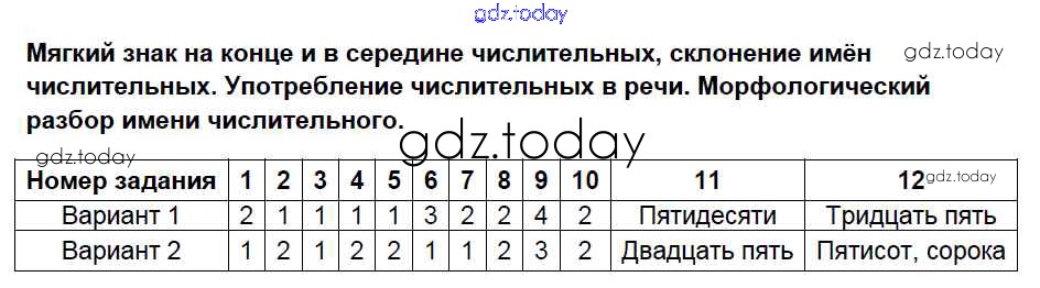 На страницах сайта gdz.today вы найдете учебный и вспомогательный материал, направленный на улучшения знаний школьной программы. ГДЗ - онлайн мир знаний Часть 2. Решение к тестам Тест-8. Мягкий знак на конце и в середине числительных, склонение имён числительных Тестам по Русскому языку для 6 класса Селезнева Экзамен УМК 2014