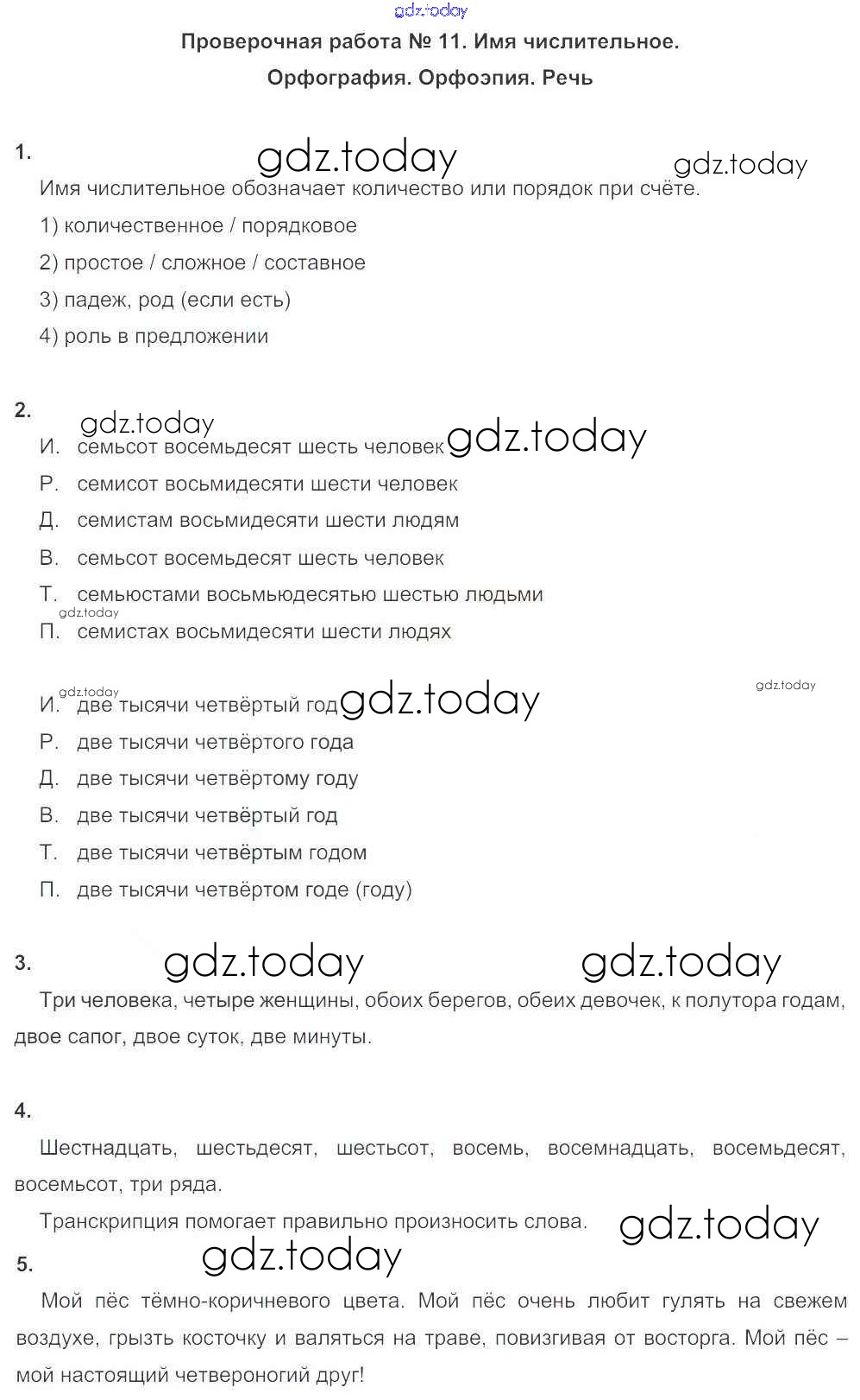 На страницах сайта gdz.today вы найдете учебный и вспомогательный материал, направленный на улучшения знаний школьной программы. ГДЗ - онлайн мир знаний Решение к проверочным работам ПР №11. Имя числительное. Орфография. Орфоэпия. Речь Тетради для оценки качества знаний по Русскому языку для 6 класса Львов Дрофа Вертикаль 2015