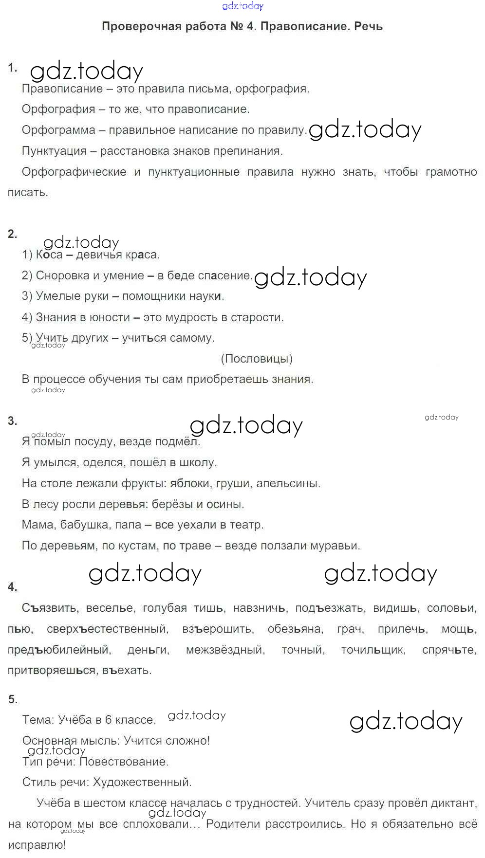 На страницах сайта gdz.today вы найдете учебный и вспомогательный материал, направленный на улучшения знаний школьной программы. ГДЗ - онлайн мир знаний Решение к проверочным работам ПР №4. Правописание. Речь Тетради для оценки качества знаний по Русскому языку для 6 класса Львов Дрофа Вертикаль 2015