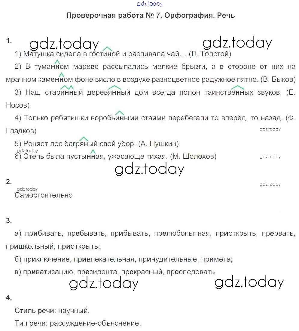 На страницах сайта gdz.today вы найдете учебный и вспомогательный материал, направленный на улучшения знаний школьной программы. ГДЗ - онлайн мир знаний Решение к проверочным работам ПР №7. Орфография. Речь Тетради для оценки качества знаний по Русскому языку для 6 класса Львов Дрофа Вертикаль 2015