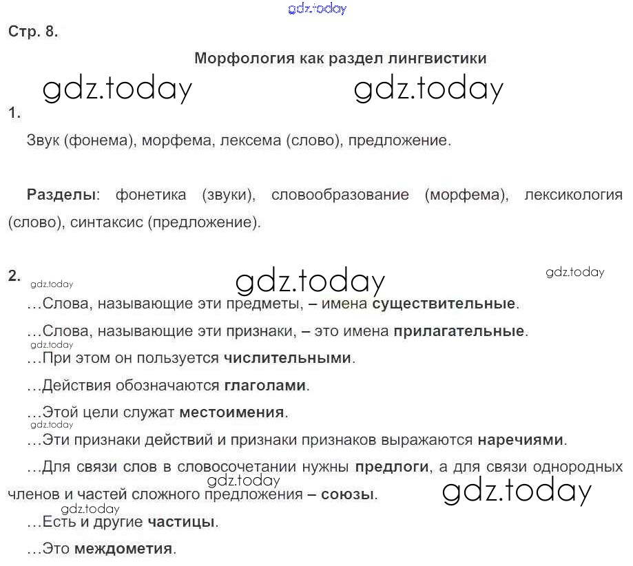 На страницах сайта gdz.today вы найдете учебный и вспомогательный материал, направленный на улучшения знаний школьной программы. ГДЗ - онлайн мир знаний Решение. Часть 1. Страницы 8 Рабочей тетради по Русскому языку для 6 класса Тростенцова, Дейкина Экзамен УМК 2018