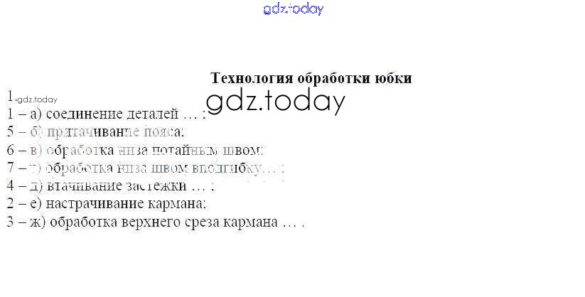 На страницах сайта gdz.today вы найдете учебный и вспомогательный материал, направленный на улучшения знаний школьной программы. ГДЗ - онлайн мир знаний Решение к теме "Технология обработки юбки" 1 Рабочей тетради по Технологии для 6 класса Кожина, Маркуцкая Дрофа 2019