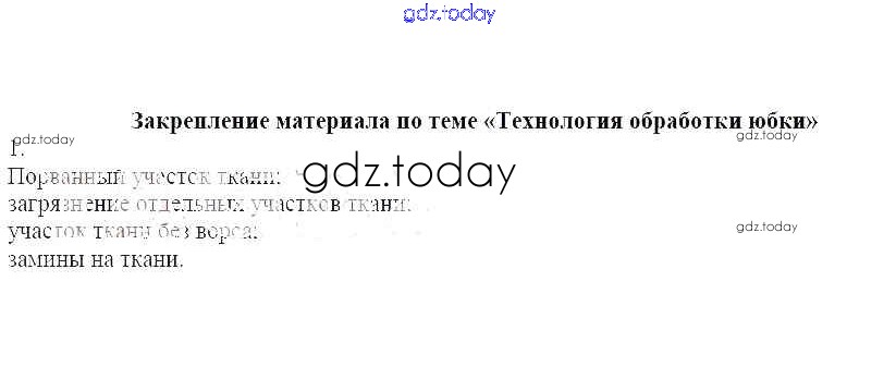 На страницах сайта gdz.today вы найдете учебный и вспомогательный материал, направленный на улучшения знаний школьной программы. ГДЗ - онлайн мир знаний Закрепление материала Решение к теме "Технология обработки юбки" 1 Рабочей тетради по Технологии для 6 класса Кожина, Маркуцкая Дрофа 2019