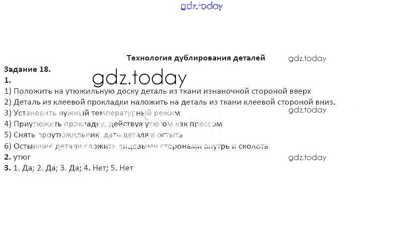На страницах сайта gdz.today вы найдете учебный и вспомогательный материал, направленный на улучшения знаний школьной программы. ГДЗ - онлайн мир знаний Решение к заданиям 18 Рабочей тетради по Технологии для 6 класса Синица Вентана-граф Алгоритм успеха 2019