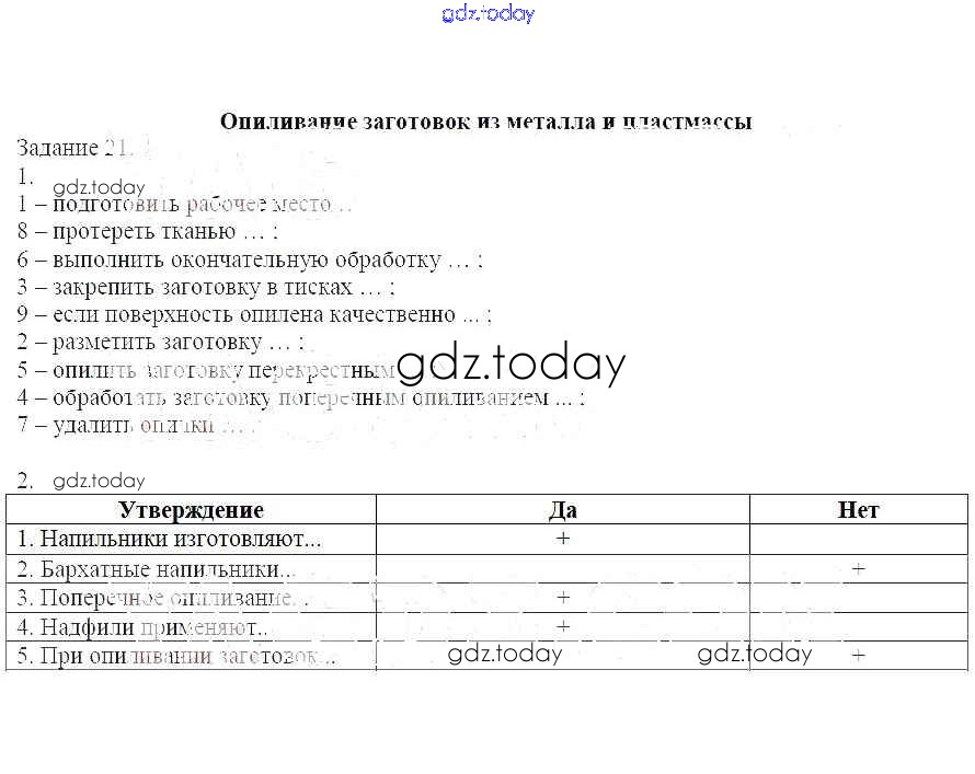 На страницах сайта gdz.today вы найдете учебный и вспомогательный материал, направленный на улучшения знаний школьной программы. ГДЗ - онлайн мир знаний Технологии ручной и машинной обработки древесины и древесных материалов (решение) 21 Рабочей тетради по Технологии для 6 класса Тищенко, Буглаева Вентана-граф Алгоритм успеха 2019