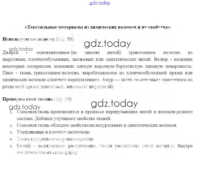 На страницах сайта gdz.today вы найдете учебный и вспомогательный материал, направленный на улучшения знаний школьной программы. ГДЗ - онлайн мир знаний Страницы (решение) 89 Учебнику по Технологии для 6 класса Синица, Симоненко Вентана-граф Алгоритм успеха 2019