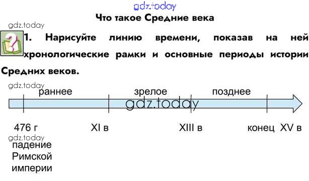 На страницах сайта gdz.today вы найдете учебный и вспомогательный материал, направленный на улучшения знаний школьной программы. ГДЗ - онлайн мир знаний Вопросы Что такое Средние века 1 Учебнику по Всеобщей истории для 6 класса Бойцов, Шукуров Русское слово Инновационная школа 2019
