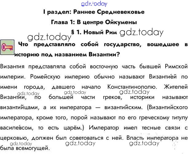 На страницах сайта gdz.today вы найдете учебный и вспомогательный материал, направленный на улучшения знаний школьной программы. ГДЗ - онлайн мир знаний Ключевые вопросы Решение к §1 1 Учебнику по Всеобщей истории для 6 класса Бойцов, Шукуров Русское слово Инновационная школа 2019