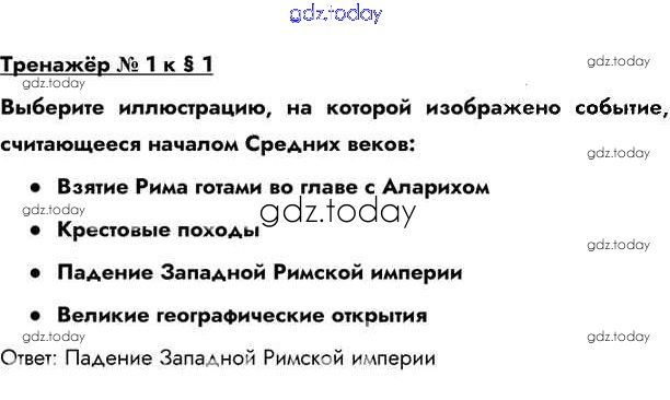 На страницах сайта gdz.today вы найдете учебный и вспомогательный материал, направленный на улучшения знаний школьной программы. ГДЗ - онлайн мир знаний Тренажёр Решение к §1 1 Учебнику по Всеобщей истории для 6 класса Бойцов, Шукуров Русское слово Инновационная школа 2019