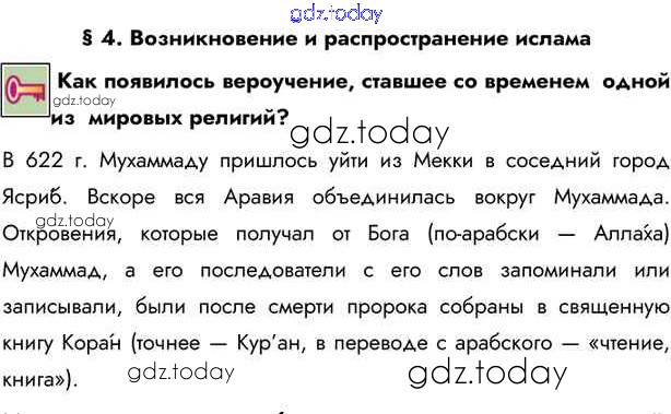 На страницах сайта gdz.today вы найдете учебный и вспомогательный материал, направленный на улучшения знаний школьной программы. ГДЗ - онлайн мир знаний Ключевые вопросы Решение к §4 1 Учебнику по Всеобщей истории для 6 класса Бойцов, Шукуров Русское слово Инновационная школа 2019
