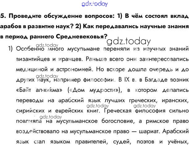 На страницах сайта gdz.today вы найдете учебный и вспомогательный материал, направленный на улучшения знаний школьной программы. ГДЗ - онлайн мир знаний Вопросы и задания после параграфа Решение к §5 5 Учебнику по Всеобщей истории для 6 класса Бойцов, Шукуров Русское слово Инновационная школа 2019
