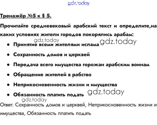 Ответы к Тренажёр Решение к §5 5 Учебнику по Всеобщей истории для 6 класса Бойцов, Шукуров Русское слово Инновационная школа 2019