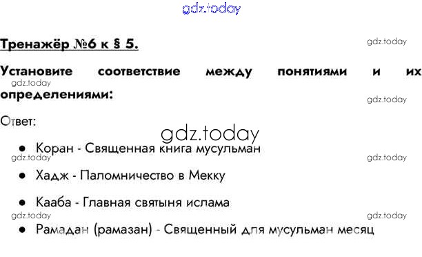 Ответы к Тренажёр Решение к §5 6 Учебнику по Всеобщей истории для 6 класса Бойцов, Шукуров Русское слово Инновационная школа 2019