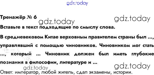 На страницах сайта gdz.today вы найдете учебный и вспомогательный материал, направленный на улучшения знаний школьной программы. ГДЗ - онлайн мир знаний Тренажёр Решение к §25 6 Учебнику по Всеобщей истории для 6 класса Бойцов, Шукуров Русское слово Инновационная школа 2019
