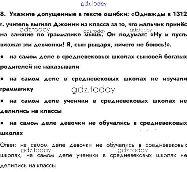 На страницах сайта gdz.today вы найдете учебный и вспомогательный материал, направленный на улучшения знаний школьной программы. ГДЗ - онлайн мир знаний Тест №1 Итоговый тест 8 Учебнику по Всеобщей истории для 6 класса Бойцов, Шукуров Русское слово Инновационная школа 2019