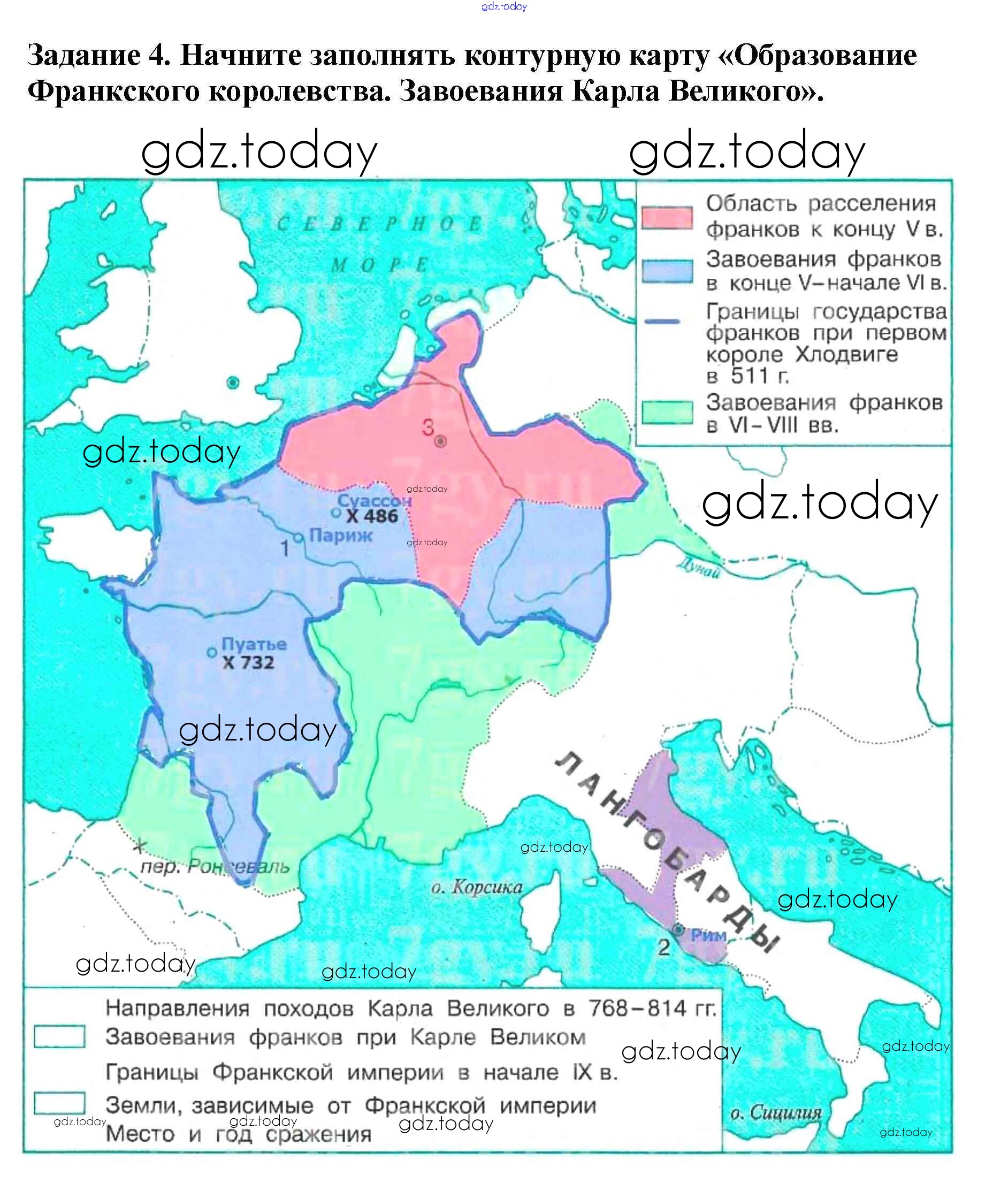 На страницах сайта gdz.today вы найдете учебный и вспомогательный материал, направленный на улучшения знаний школьной программы. ГДЗ - онлайн мир знаний Решение к § 1 «Образование варварских королевств. Государство франков в VI—VIII веках» 4 Рабочей тетради по Всеобщей истории для 6 класса Крючкова Просвещение 2015