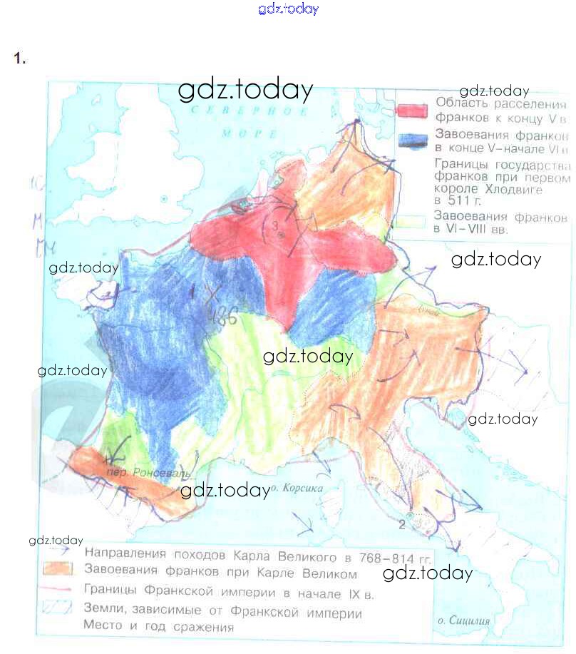 На страницах сайта gdz.today вы найдете учебный и вспомогательный материал, направленный на улучшения знаний школьной программы. ГДЗ - онлайн мир знаний Решение к § 3 «Возникновение и распад империи Карла Великого» 1 Рабочей тетради по Всеобщей истории для 6 класса Крючкова Просвещение 2015