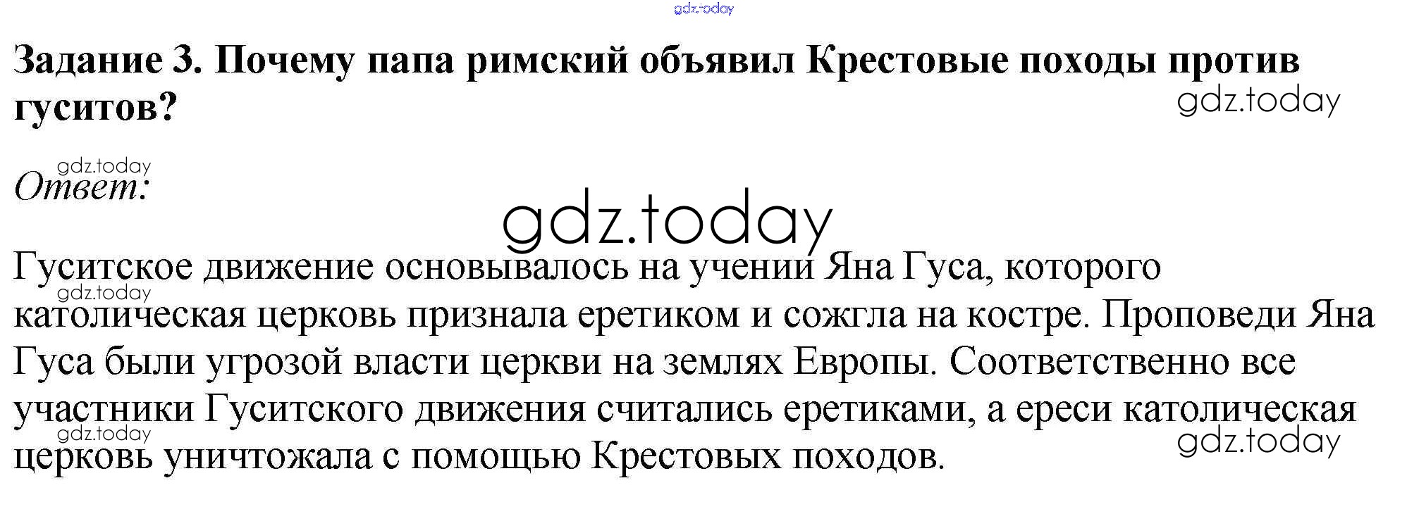 На страницах сайта gdz.today вы найдете учебный и вспомогательный материал, направленный на улучшения знаний школьной программы. ГДЗ - онлайн мир знаний Решение к § 24 «Гуситское движение в Чехии» 3 Рабочей тетради по Всеобщей истории для 6 класса Крючкова Просвещение 2015