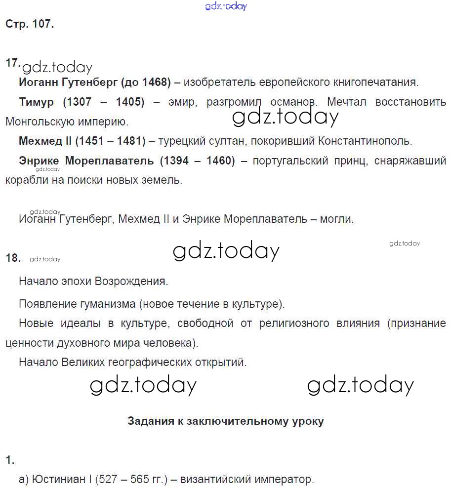 На страницах сайта gdz.today вы найдете учебный и вспомогательный материал, направленный на улучшения знаний школьной программы. ГДЗ - онлайн мир знаний Решение к главе 9. Где был и и где не был Марко Поло стр. 107 Рабочей тетради по Всеобщей истории для 6 класса Петрова Русское слово Инновационная школа 2017