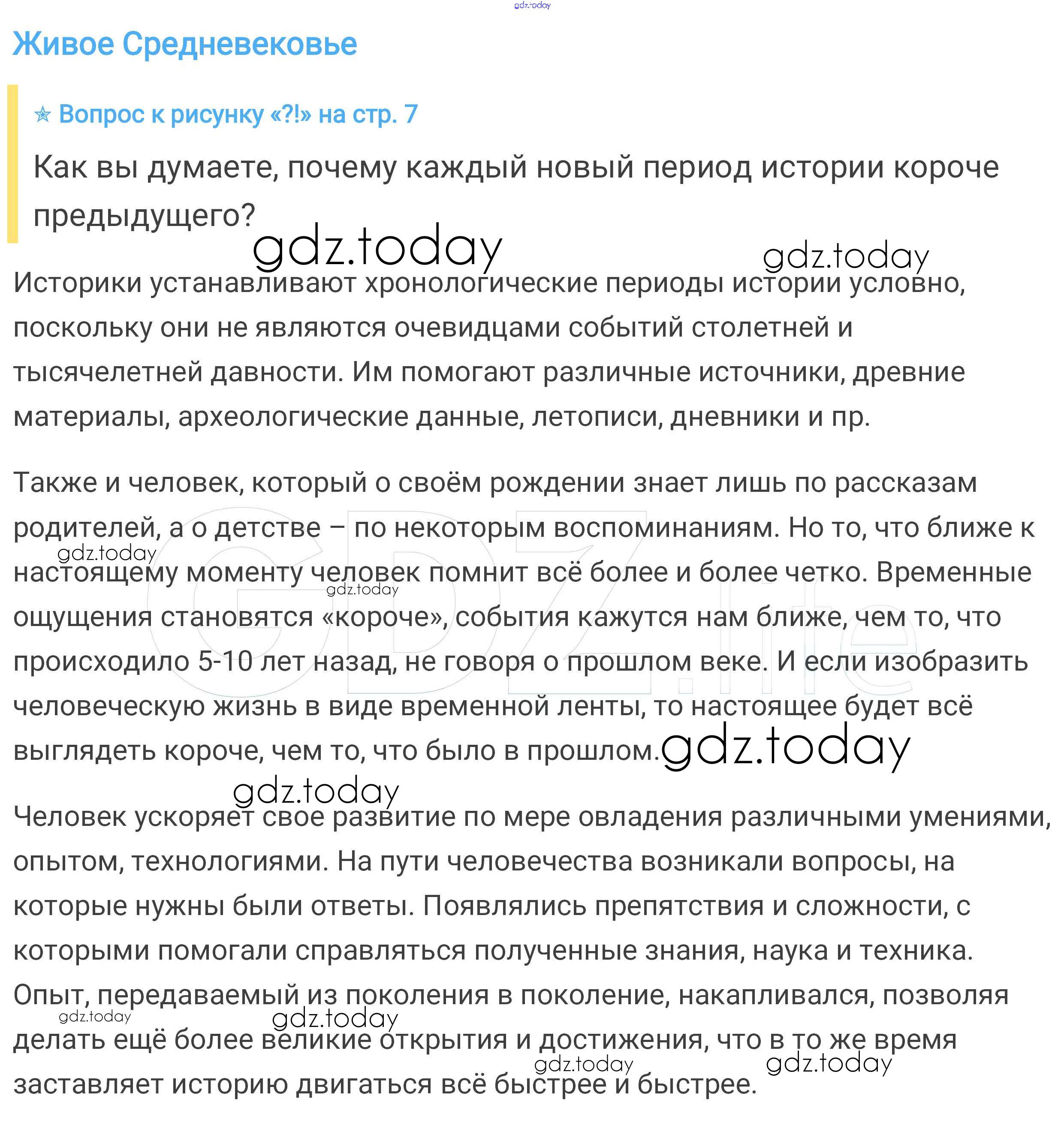 На страницах сайта gdz.today вы найдете учебный и вспомогательный материал, направленный на улучшения знаний школьной программы. ГДЗ - онлайн мир знаний Вопросы к рисункам Введение стр.7 Учебнику по Всеобщей истории для 6 класса Агибалова, Донской Просвещение 2014