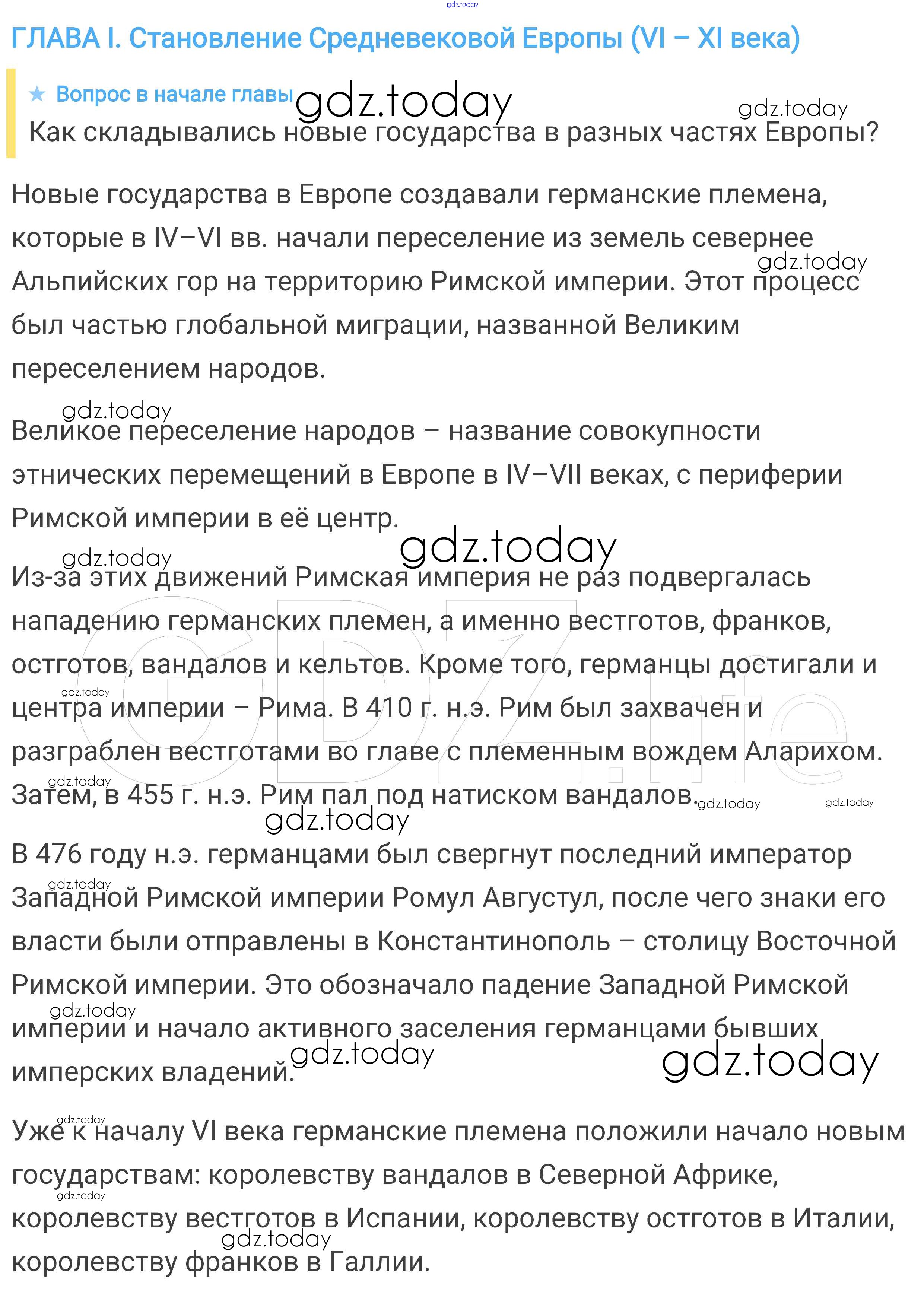 На страницах сайта gdz.today вы найдете учебный и вспомогательный материал, направленный на улучшения знаний школьной программы. ГДЗ - онлайн мир знаний Вопросы в начале главы Решение к главе 1 1 Учебнику по Всеобщей истории для 6 класса Агибалова, Донской Просвещение 2014