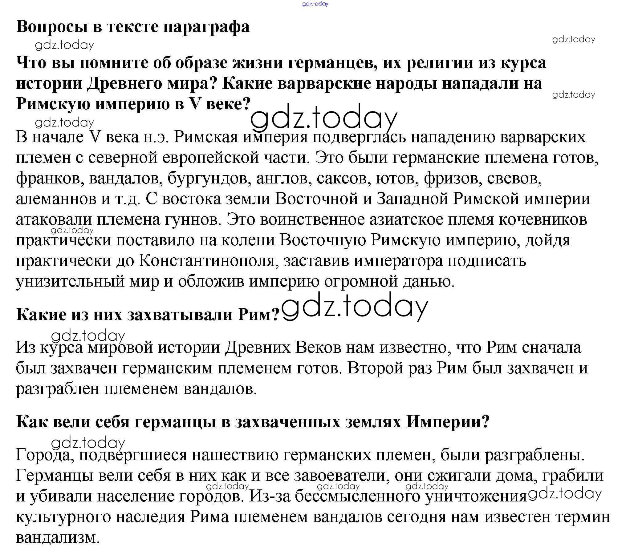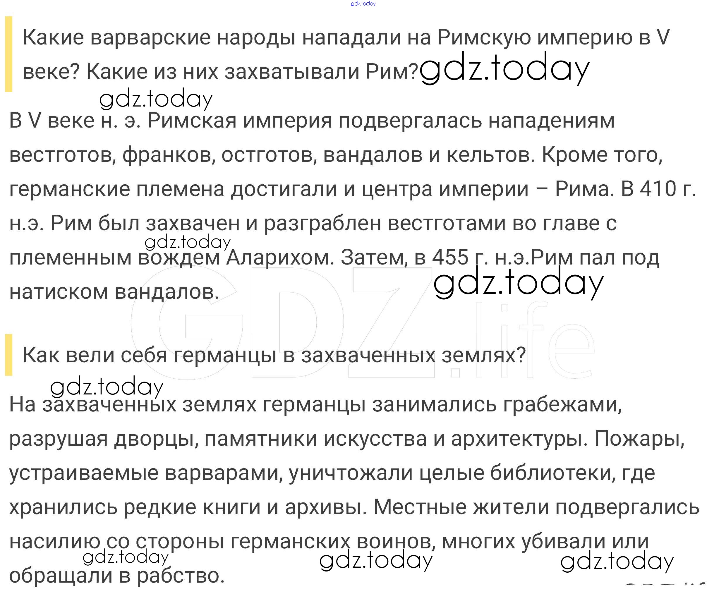 На страницах сайта gdz.today вы найдете учебный и вспомогательный материал, направленный на улучшения знаний школьной программы. ГДЗ - онлайн мир знаний Вопросы в начале параграфа § 1. Образование варварских королевств. Государство франков в VI-VIII веках 1 Учебнику по Всеобщей истории для 6 класса Агибалова, Донской Просвещение 2014