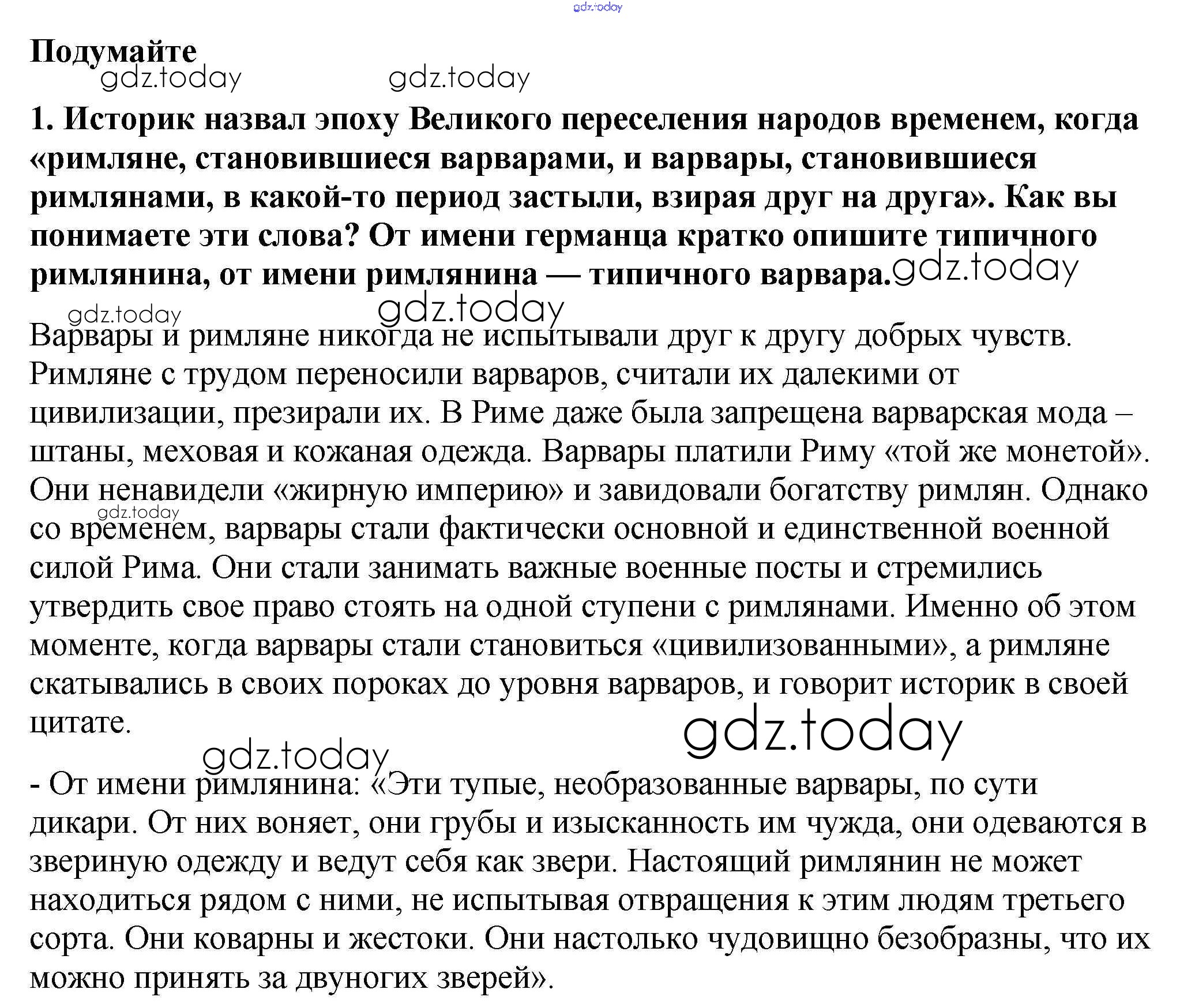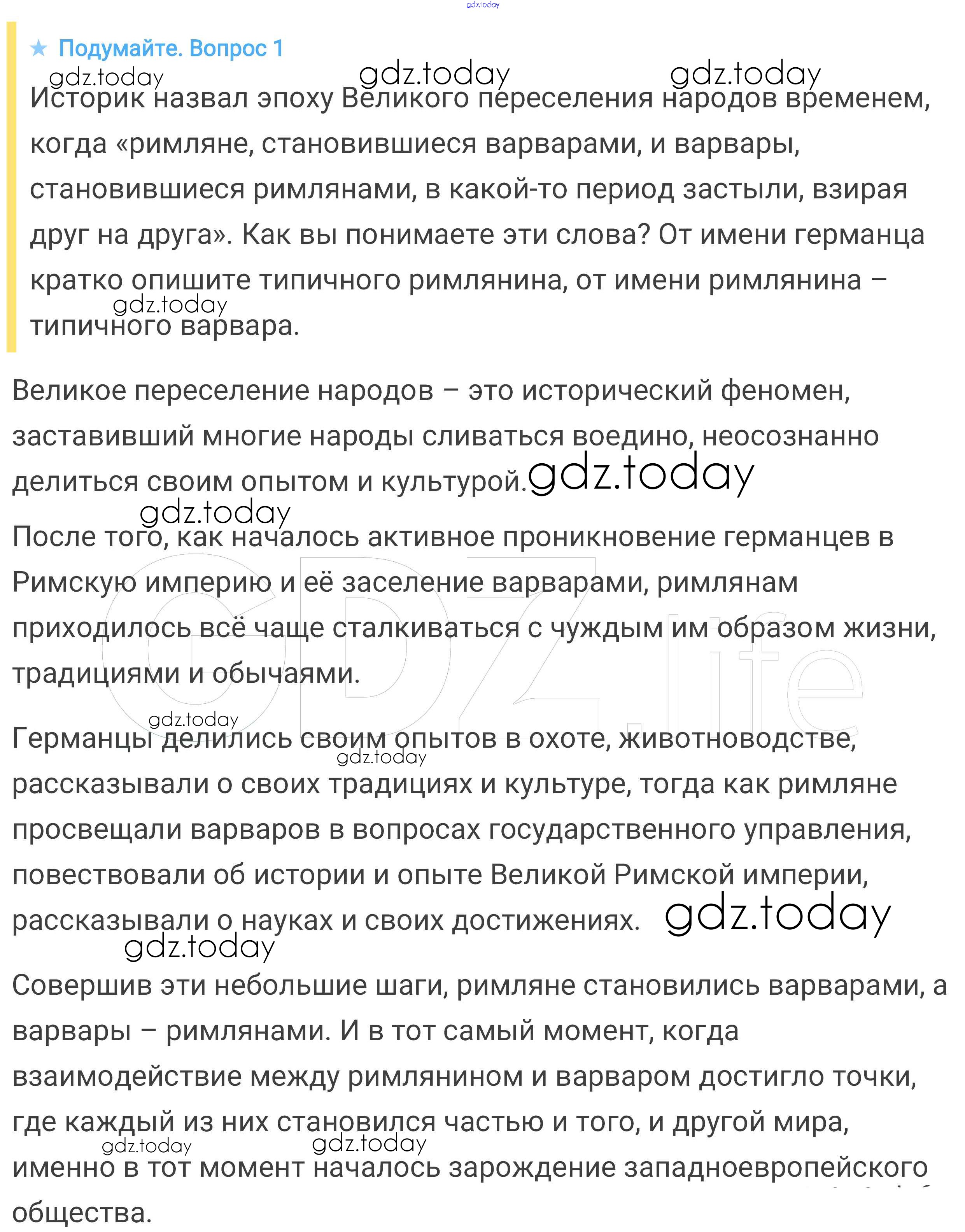 На страницах сайта gdz.today вы найдете учебный и вспомогательный материал, направленный на улучшения знаний школьной программы. ГДЗ - онлайн мир знаний Подумайте § 1. Образование варварских королевств. Государство франков в VI-VIII веках 1 Учебнику по Всеобщей истории для 6 класса Агибалова, Донской Просвещение 2014