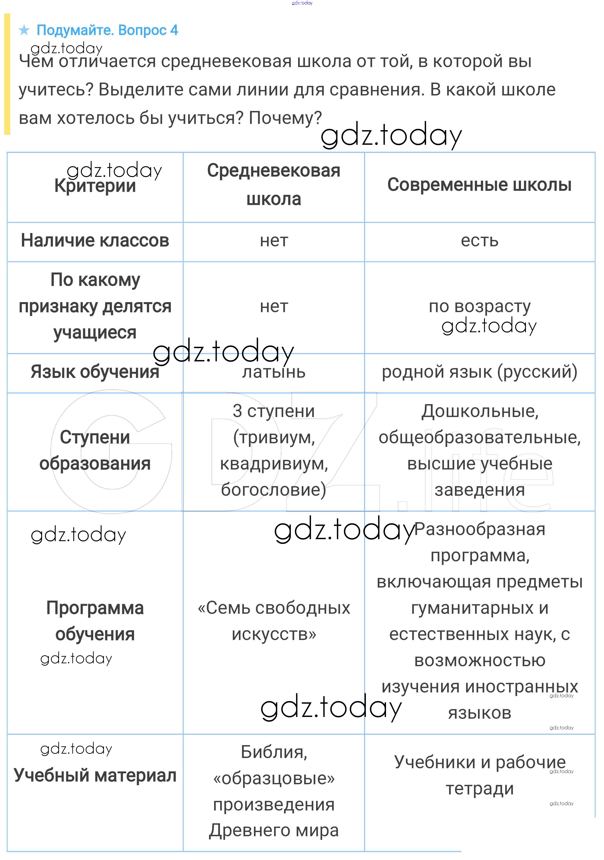 На страницах сайта gdz.today вы найдете учебный и вспомогательный материал, направленный на улучшения знаний школьной программы. ГДЗ - онлайн мир знаний Подумайте § 2. Христианская церковь в раннее Средневековье 4 Учебнику по Всеобщей истории для 6 класса Агибалова, Донской Просвещение 2014