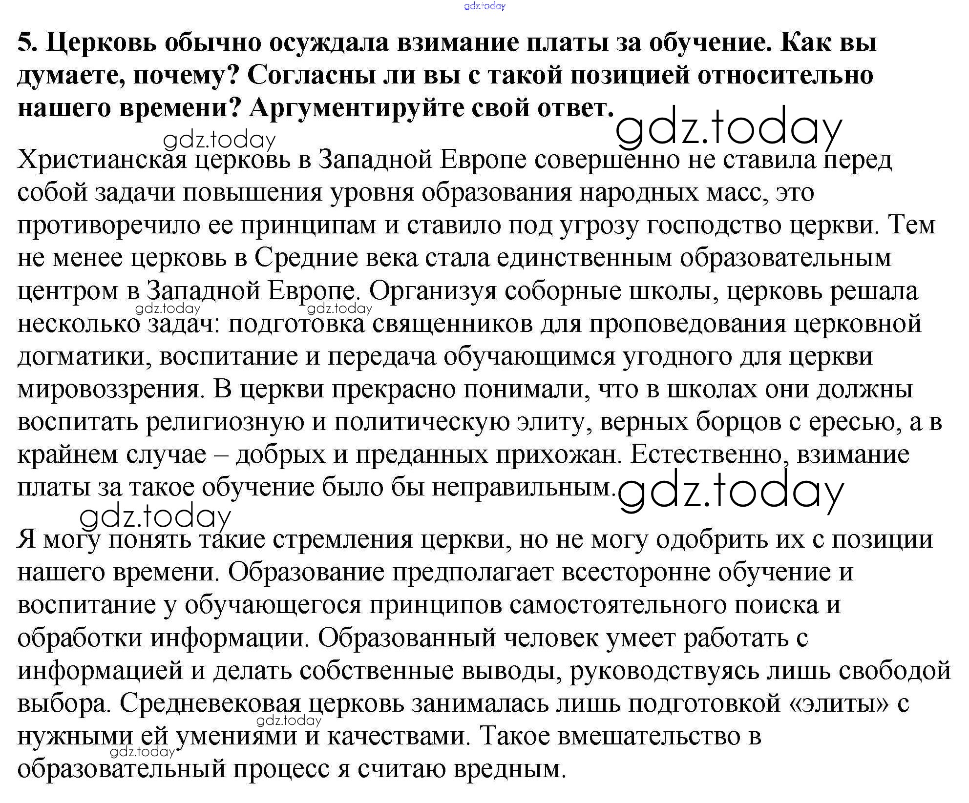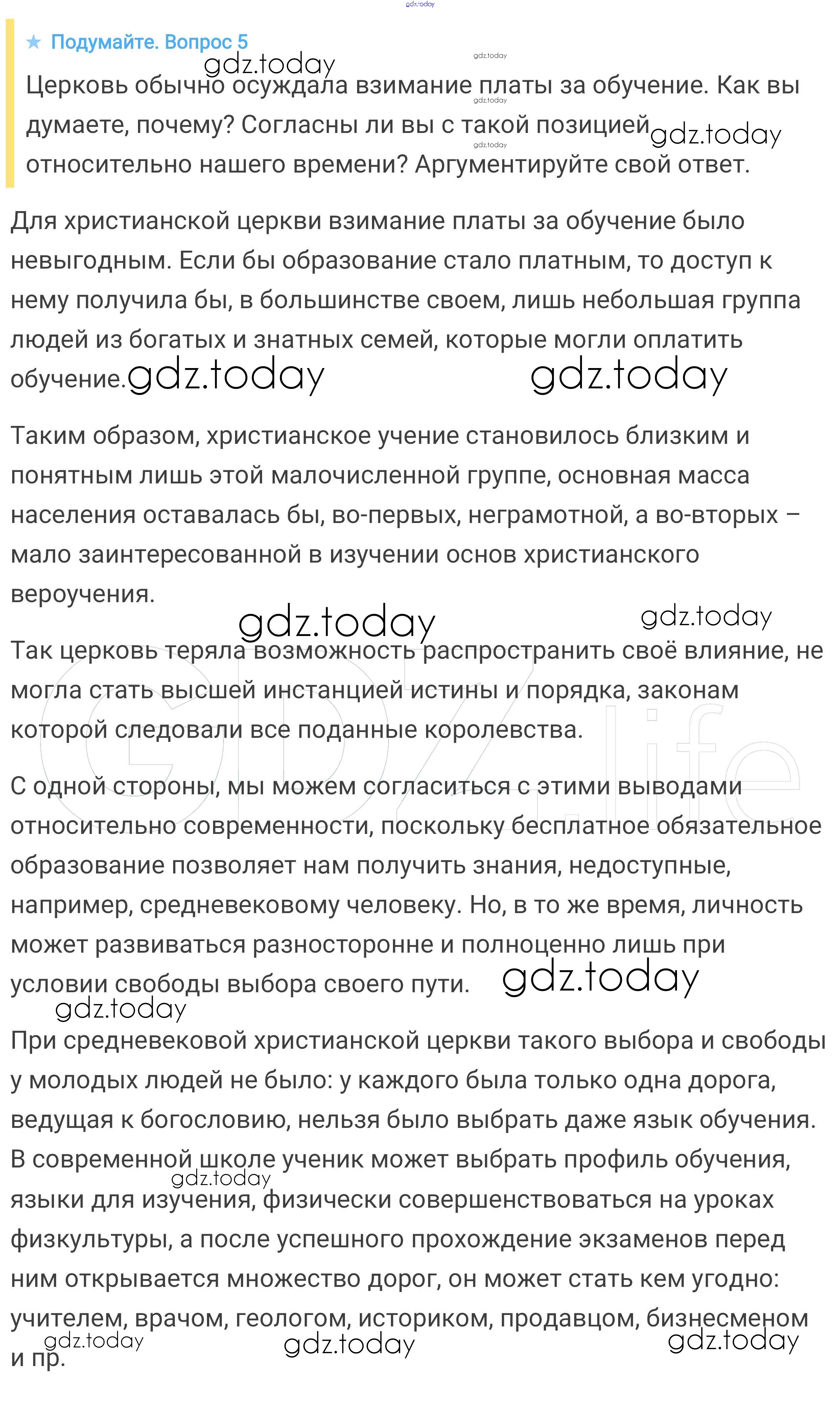 На страницах сайта gdz.today вы найдете учебный и вспомогательный материал, направленный на улучшения знаний школьной программы. ГДЗ - онлайн мир знаний Подумайте § 2. Христианская церковь в раннее Средневековье 5 Учебнику по Всеобщей истории для 6 класса Агибалова, Донской Просвещение 2014