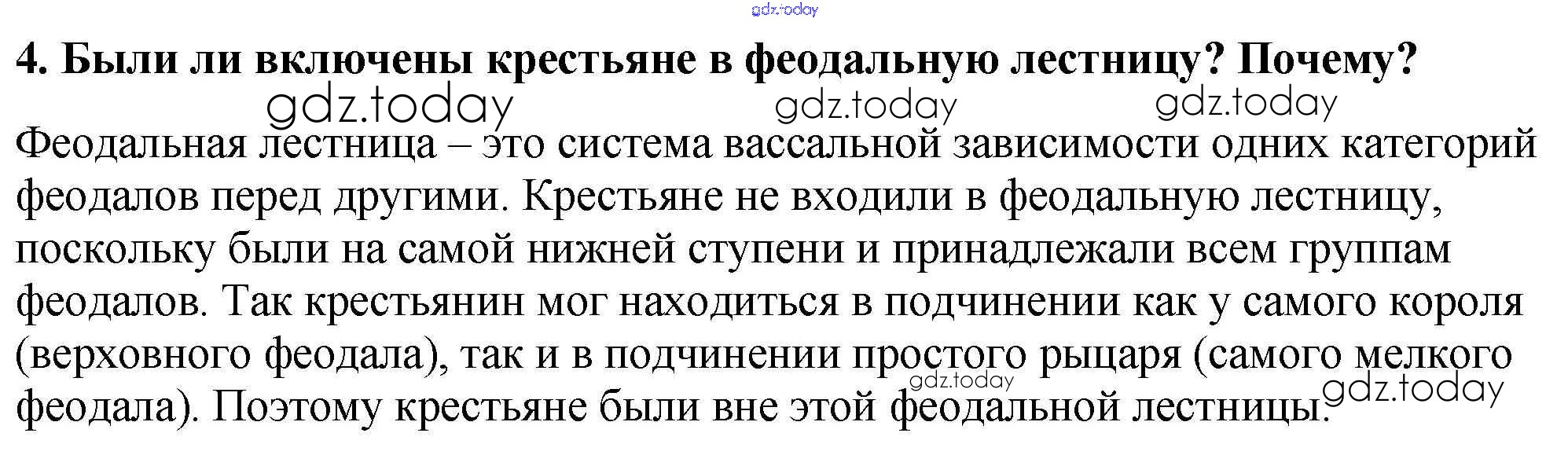 На страницах сайта gdz.today вы найдете учебный и вспомогательный материал, направленный на улучшения знаний школьной программы. ГДЗ - онлайн мир знаний Подумайте § 4. Феодальная раздробленность в Западной Европы в IX-XI веках 4 Учебнику по Всеобщей истории для 6 класса Агибалова, Донской Просвещение 2014