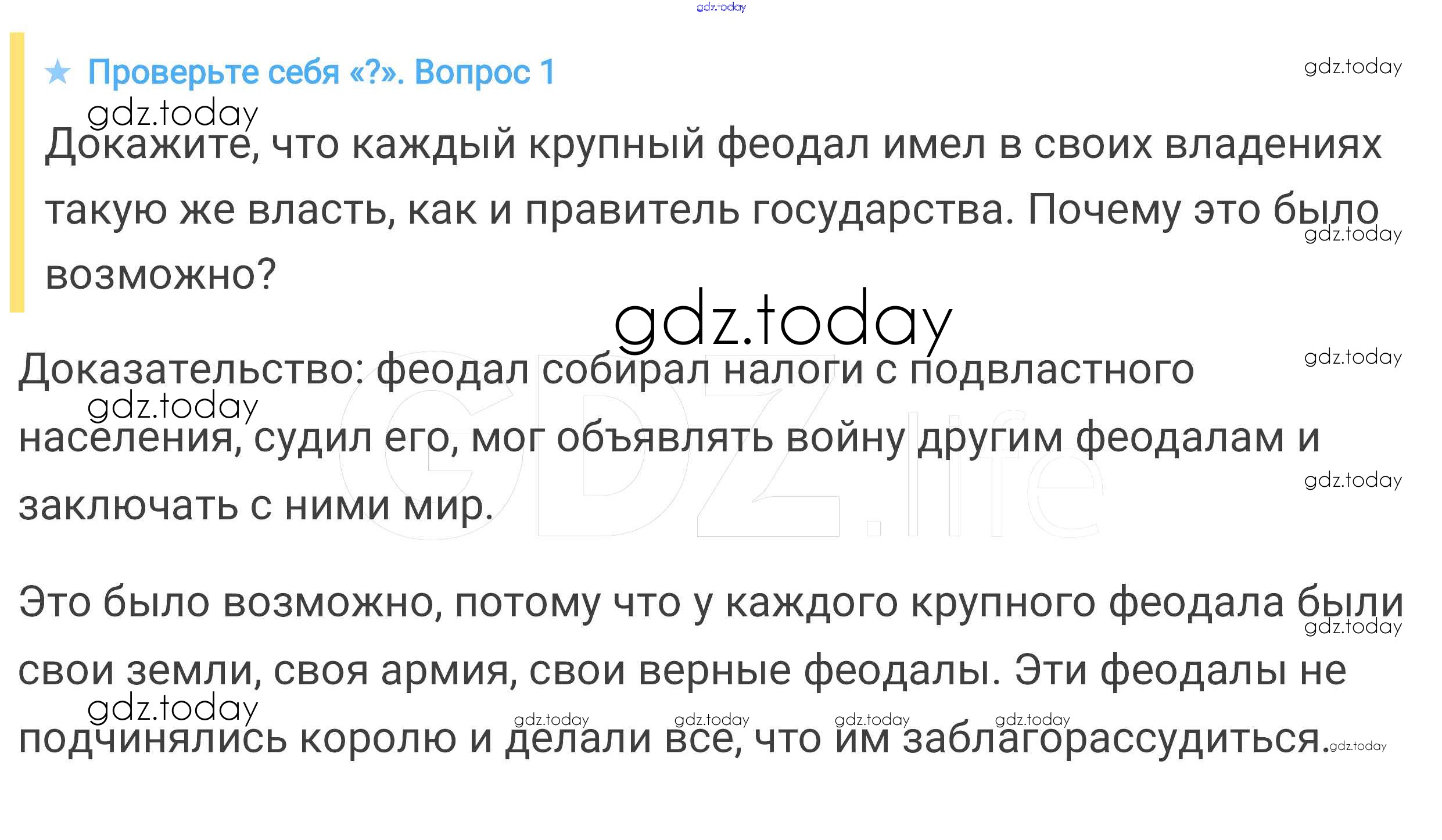 На страницах сайта gdz.today вы найдете учебный и вспомогательный материал, направленный на улучшения знаний школьной программы. ГДЗ - онлайн мир знаний Проверьте себя § 4. Феодальная раздробленность в Западной Европы в IX-XI веках 1 Учебнику по Всеобщей истории для 6 класса Агибалова, Донской Просвещение 2014