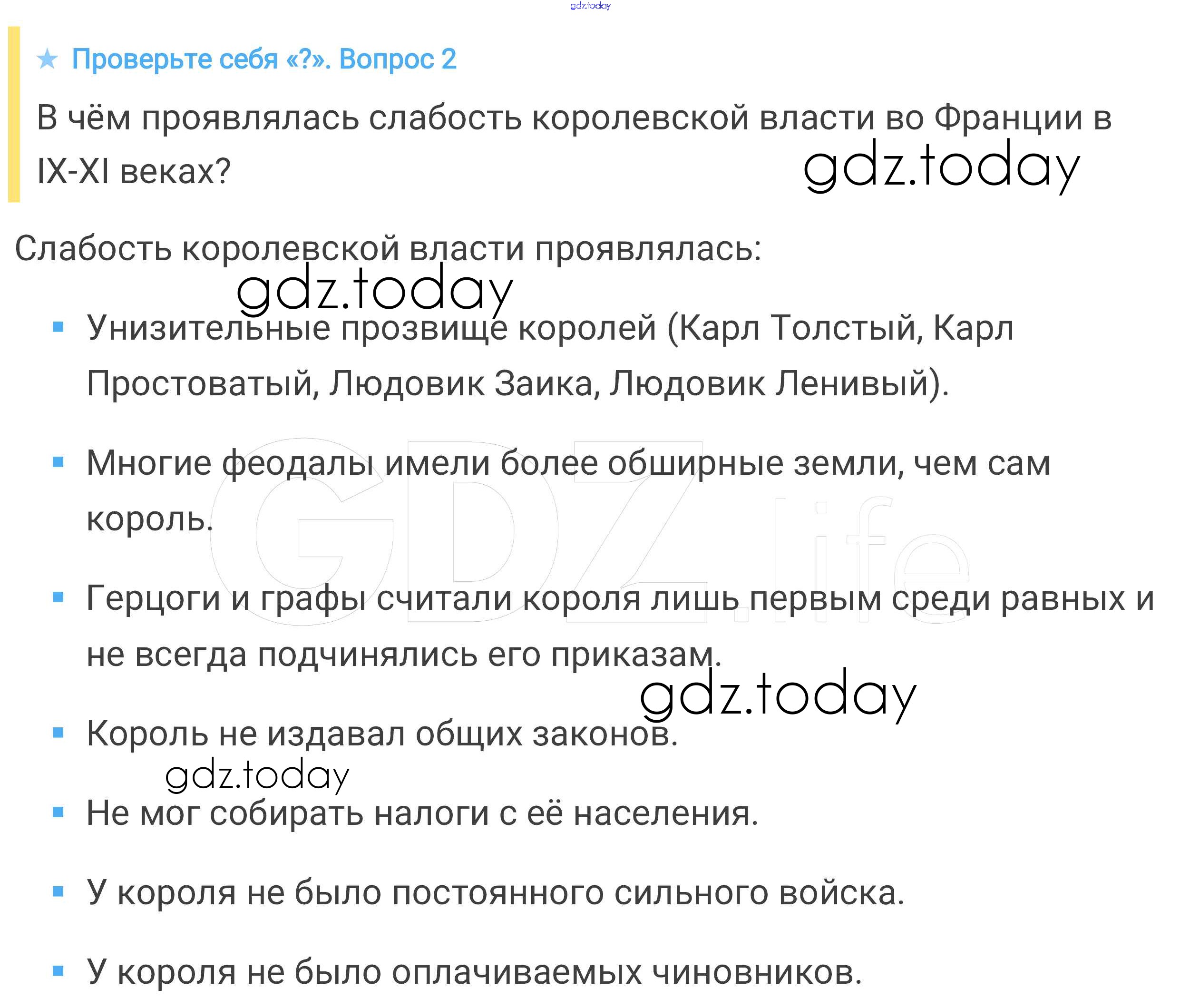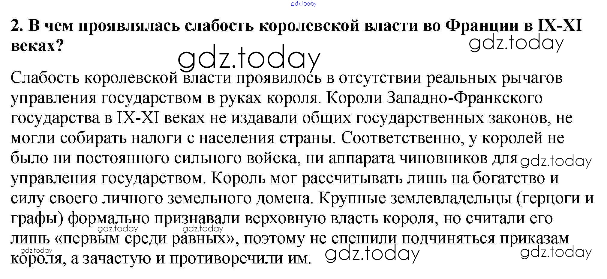 На страницах сайта gdz.today вы найдете учебный и вспомогательный материал, направленный на улучшения знаний школьной программы. ГДЗ - онлайн мир знаний Проверьте себя § 4. Феодальная раздробленность в Западной Европы в IX-XI веках 2 Учебнику по Всеобщей истории для 6 класса Агибалова, Донской Просвещение 2014