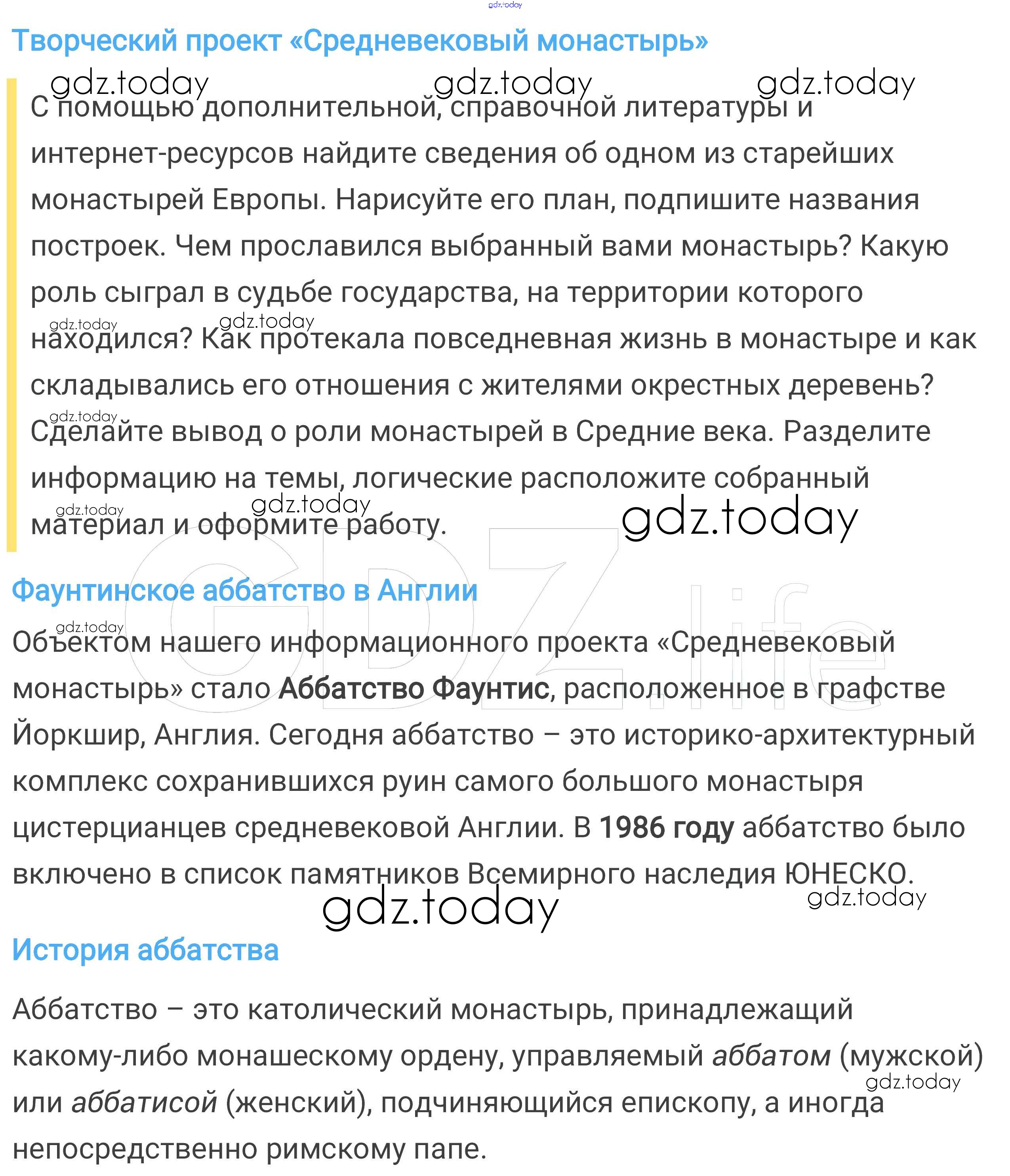 На страницах сайта gdz.today вы найдете учебный и вспомогательный материал, направленный на улучшения знаний школьной программы. ГДЗ - онлайн мир знаний Творческие работы и проекты Решение к главе 1 1 Учебнику по Всеобщей истории для 6 класса Агибалова, Донской Просвещение 2014