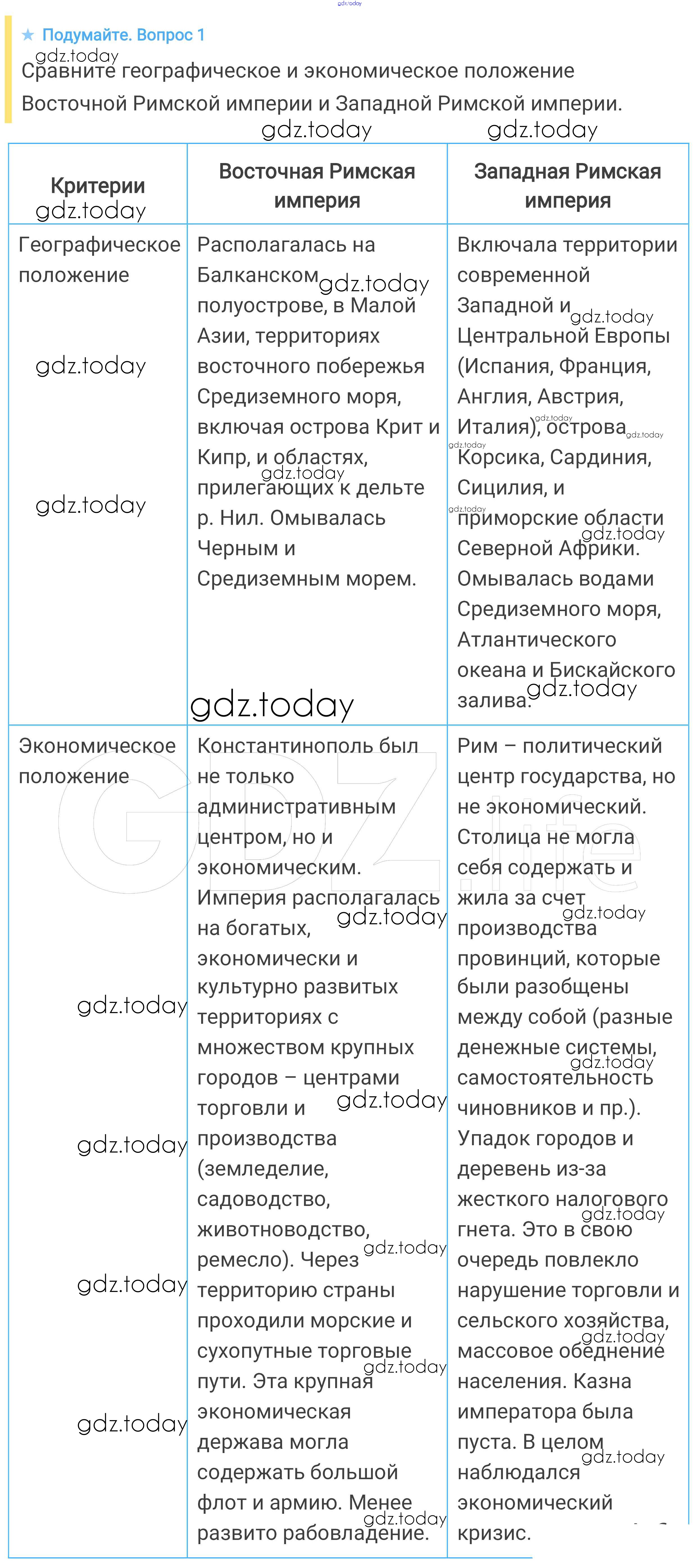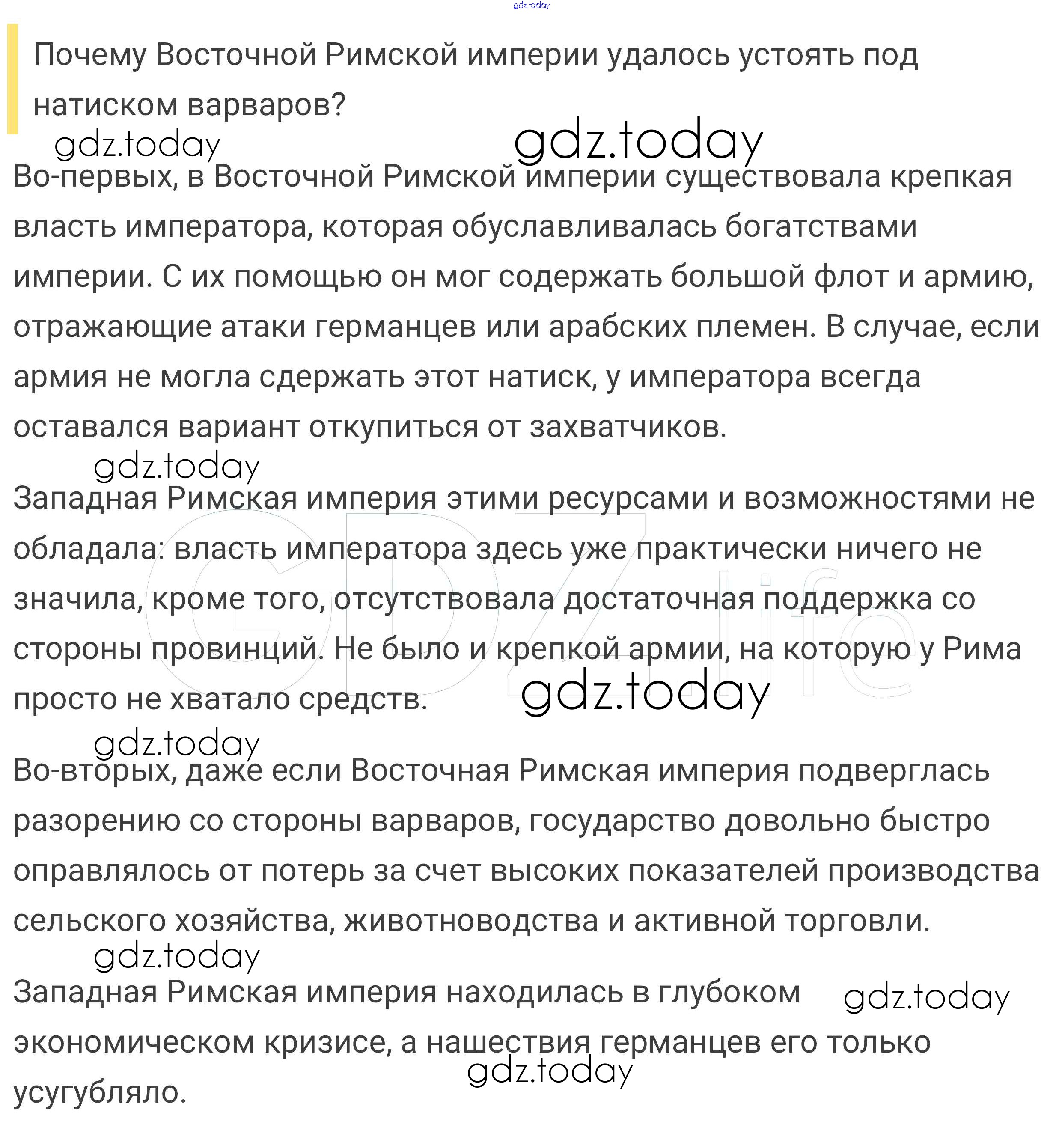 На страницах сайта gdz.today вы найдете учебный и вспомогательный материал, направленный на улучшения знаний школьной программы. ГДЗ - онлайн мир знаний Подумайте § 6. Византия при Юстиниане. Борьба империи с внешними врагами 1 Учебнику по Всеобщей истории для 6 класса Агибалова, Донской Просвещение 2014