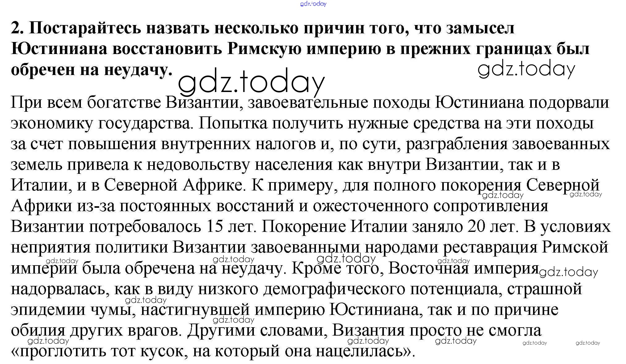 На страницах сайта gdz.today вы найдете учебный и вспомогательный материал, направленный на улучшения знаний школьной программы. ГДЗ - онлайн мир знаний Подумайте § 6. Византия при Юстиниане. Борьба империи с внешними врагами 2 Учебнику по Всеобщей истории для 6 класса Агибалова, Донской Просвещение 2014
