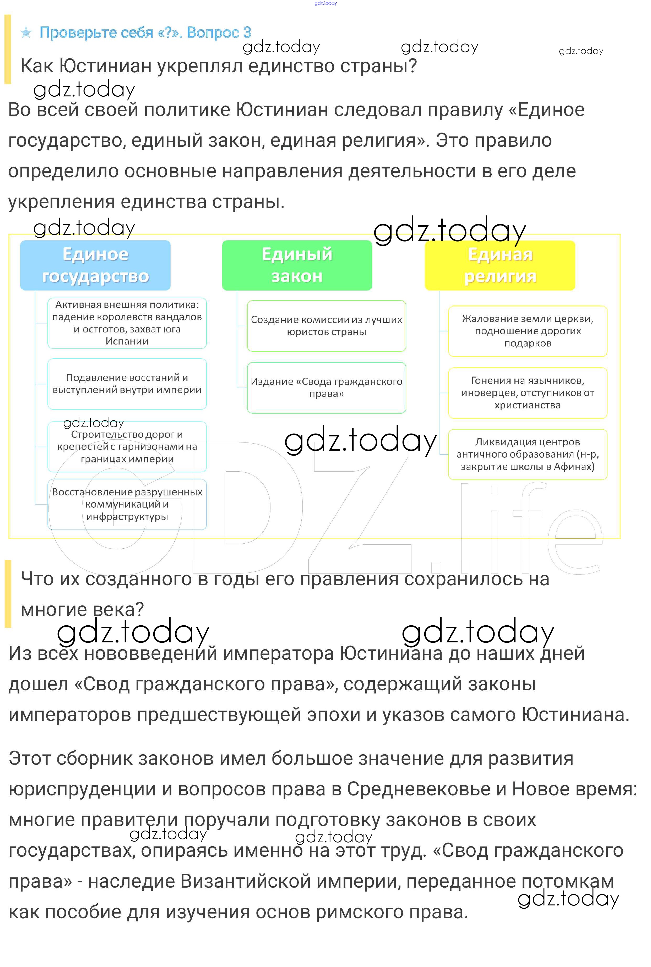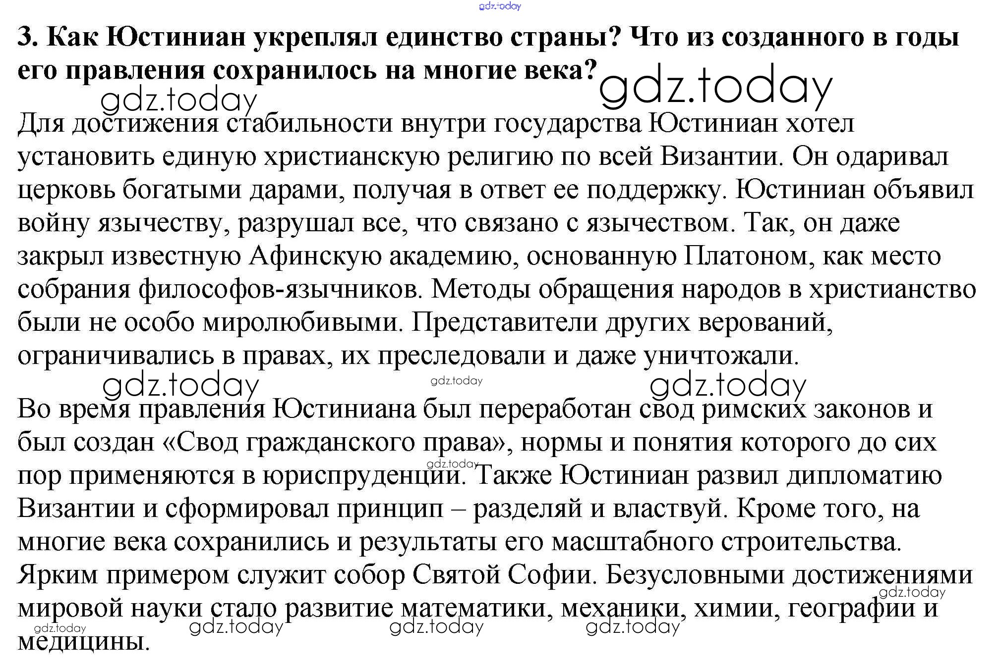 На страницах сайта gdz.today вы найдете учебный и вспомогательный материал, направленный на улучшения знаний школьной программы. ГДЗ - онлайн мир знаний Проверьте себя § 6. Византия при Юстиниане. Борьба империи с внешними врагами 3 Учебнику по Всеобщей истории для 6 класса Агибалова, Донской Просвещение 2014