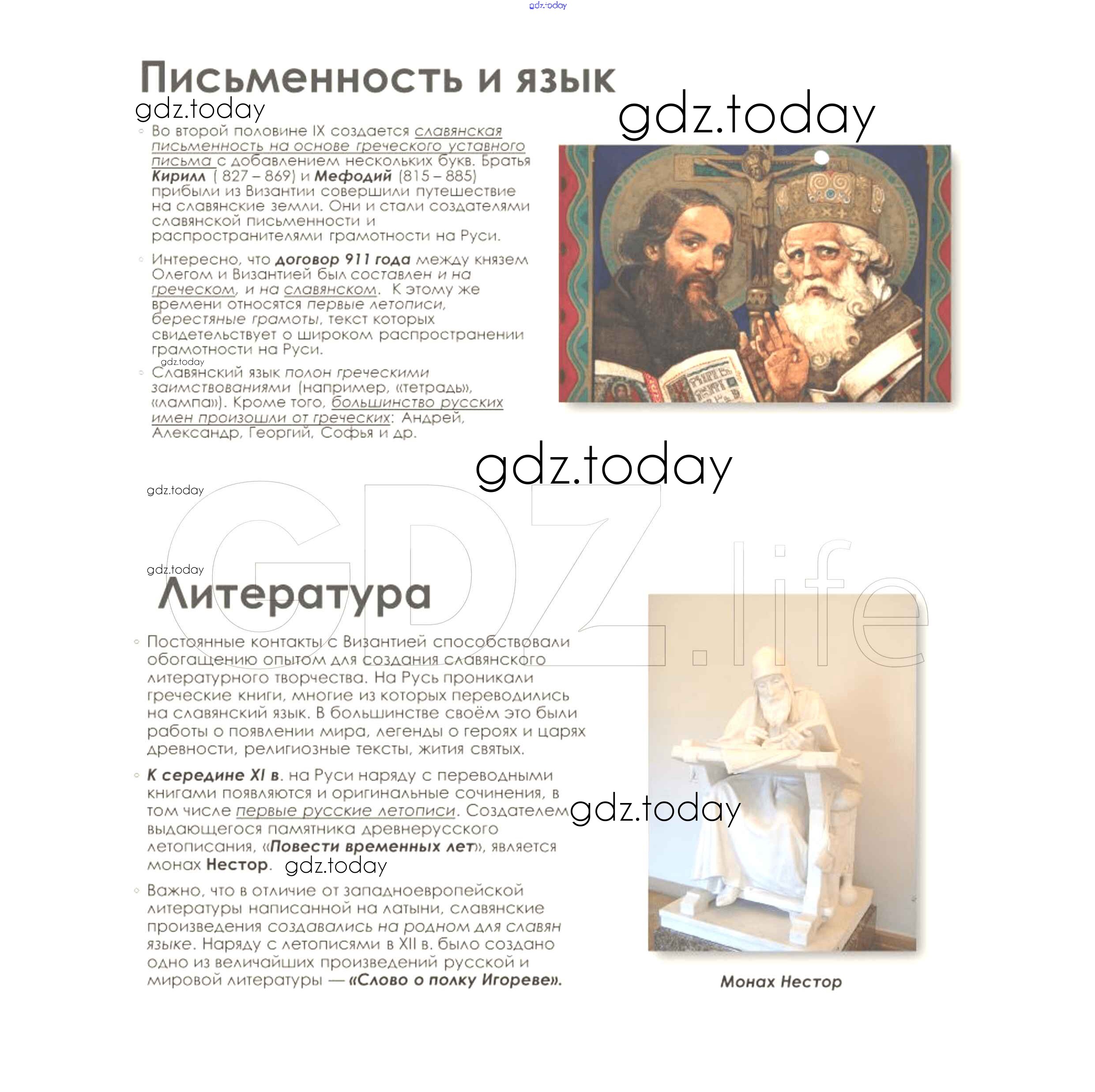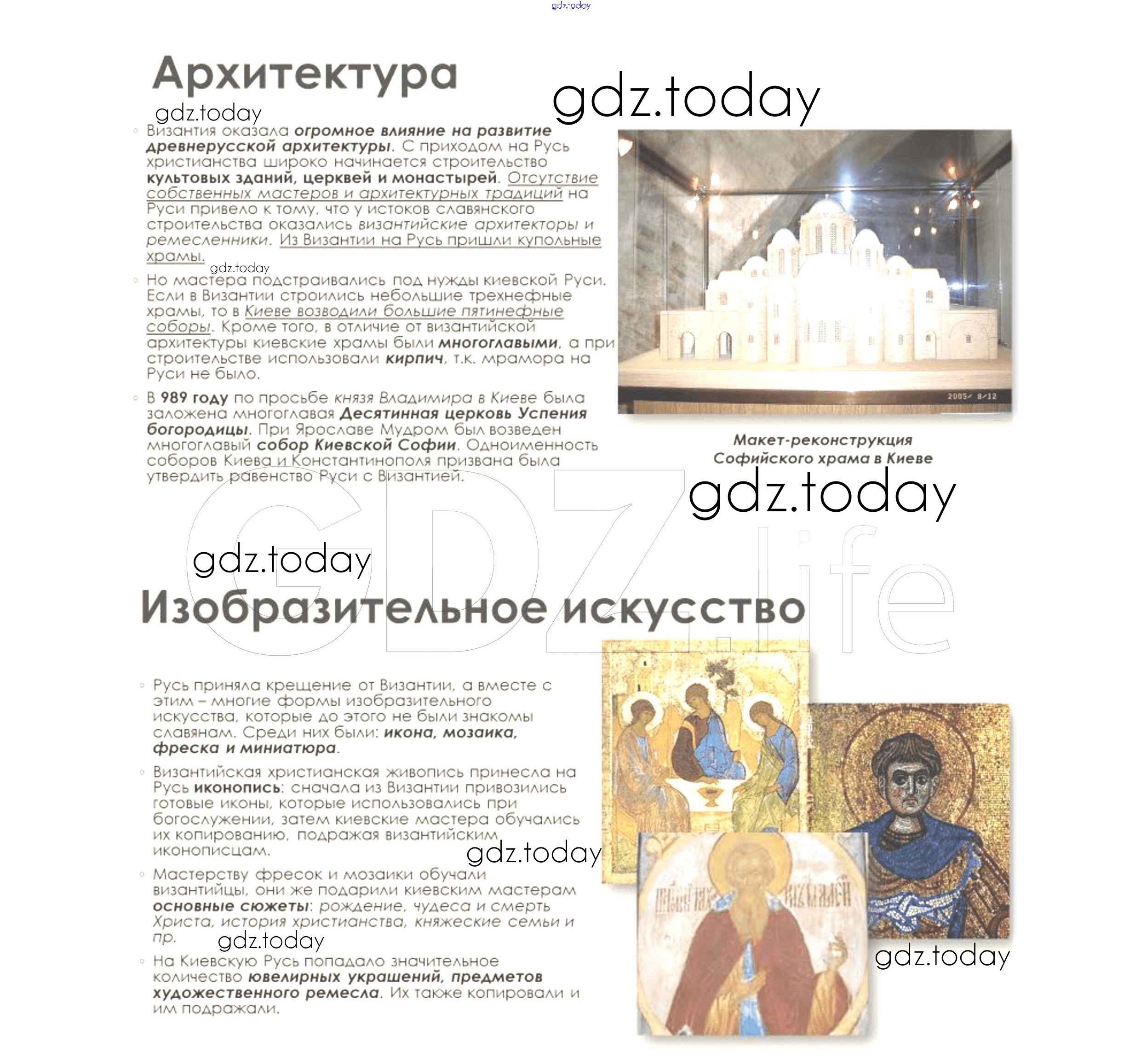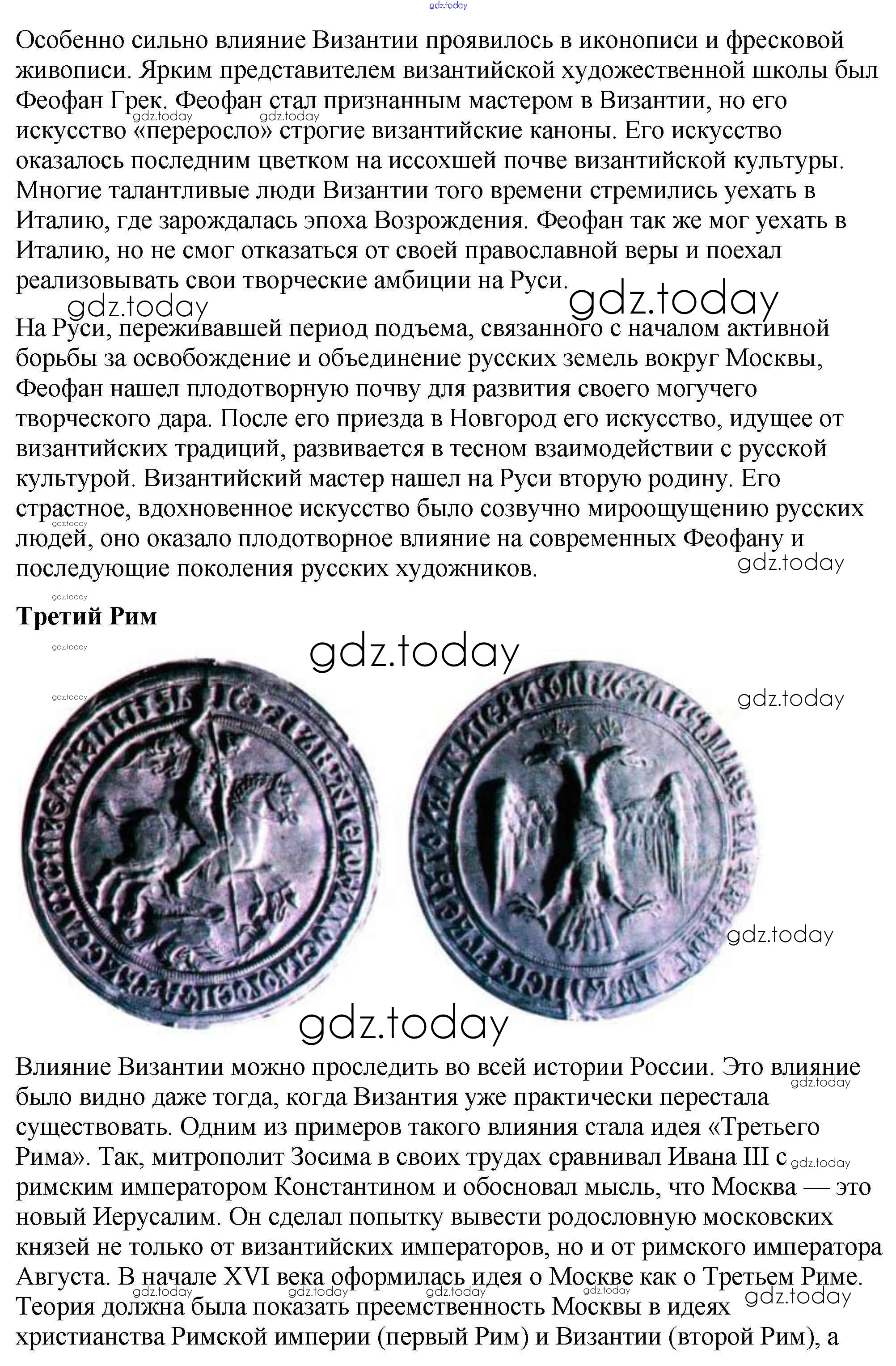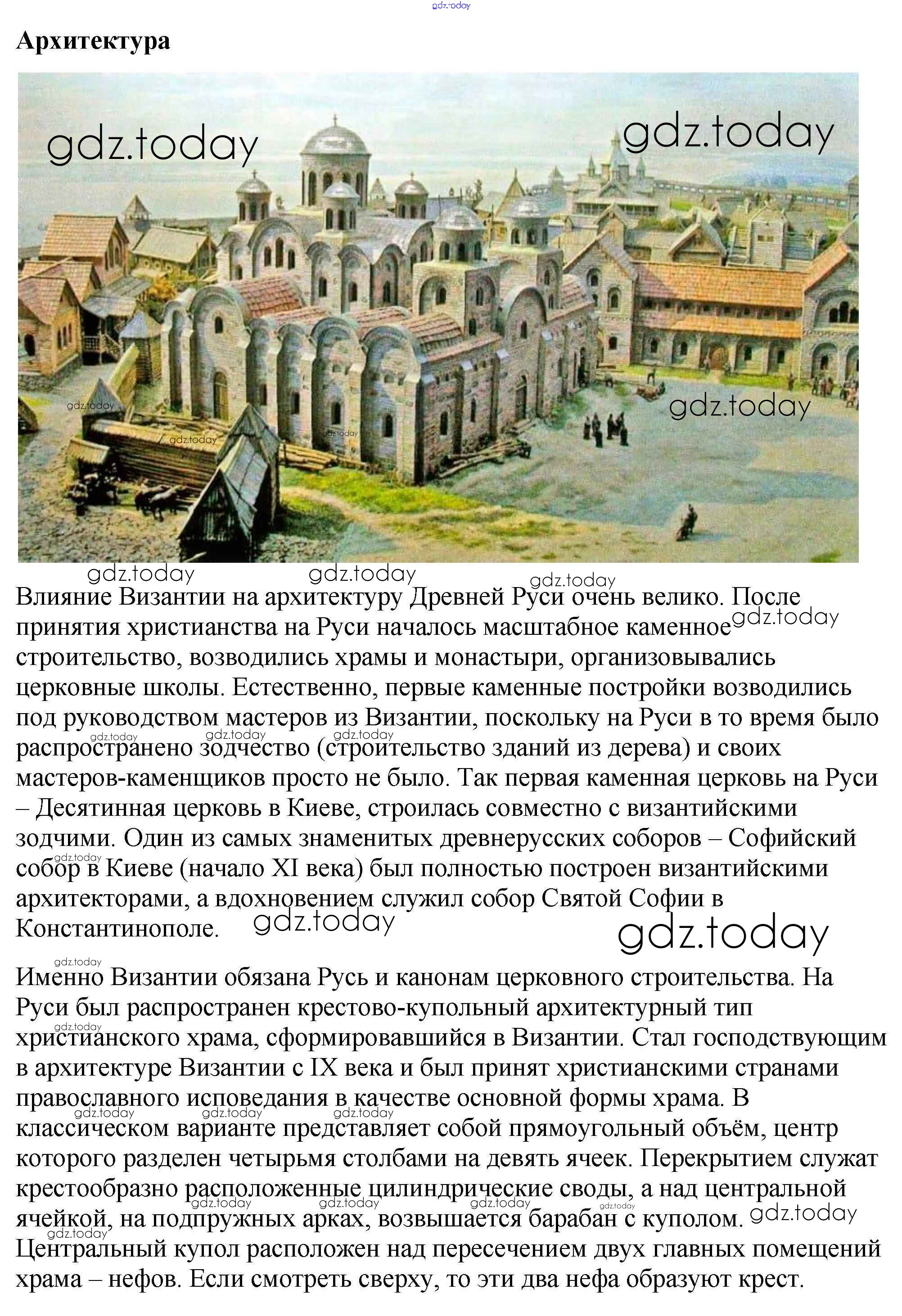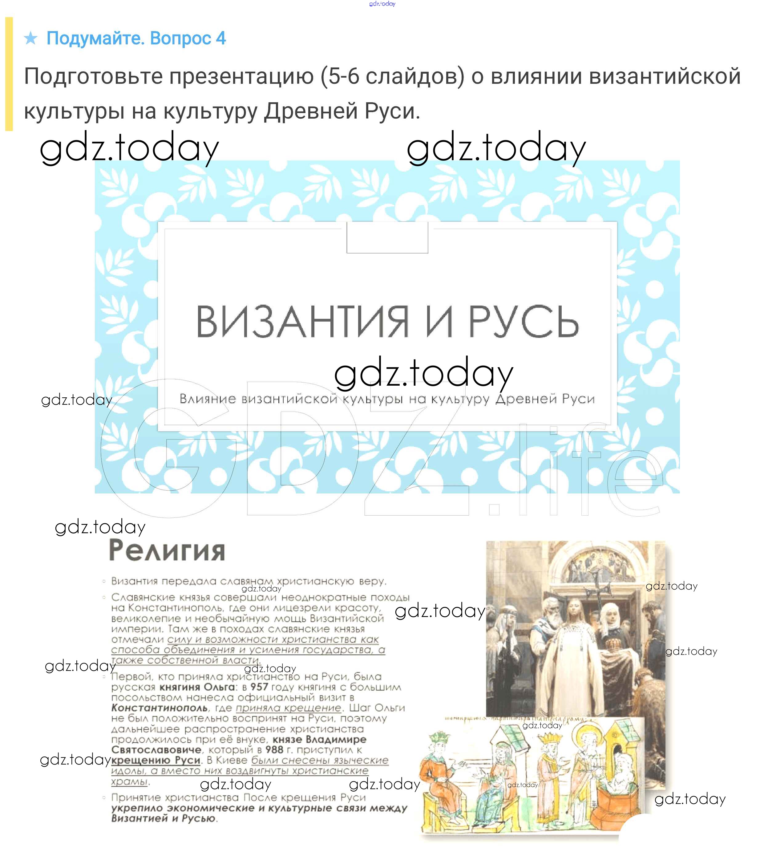 На страницах сайта gdz.today вы найдете учебный и вспомогательный материал, направленный на улучшения знаний школьной программы. ГДЗ - онлайн мир знаний Подумайте § 7. Культура Византии 4 Учебнику по Всеобщей истории для 6 класса Агибалова, Донской Просвещение 2014