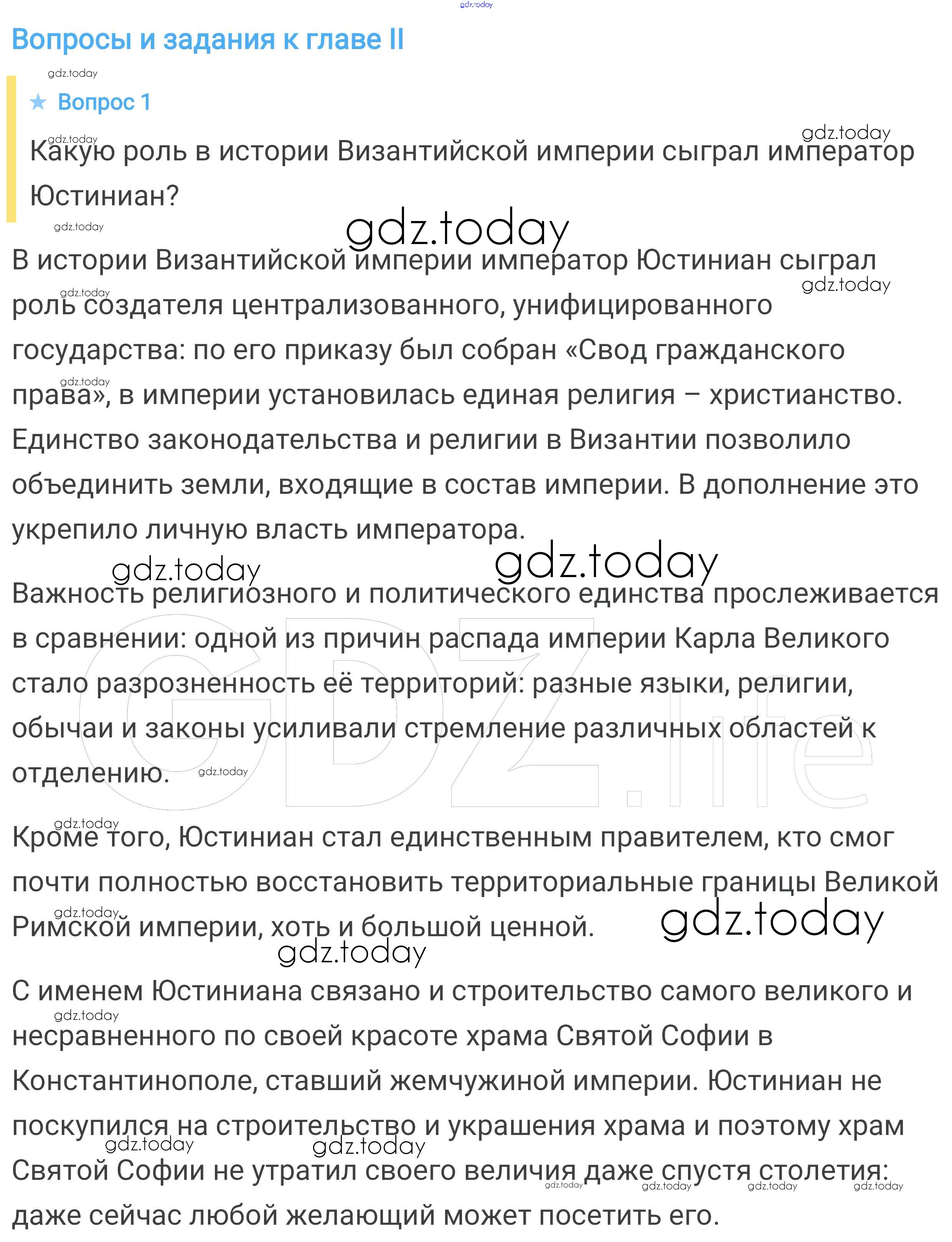 На страницах сайта gdz.today вы найдете учебный и вспомогательный материал, направленный на улучшения знаний школьной программы. ГДЗ - онлайн мир знаний Вопросы и задания к главе Решение к главе 2 1 Учебнику по Всеобщей истории для 6 класса Агибалова, Донской Просвещение 2014