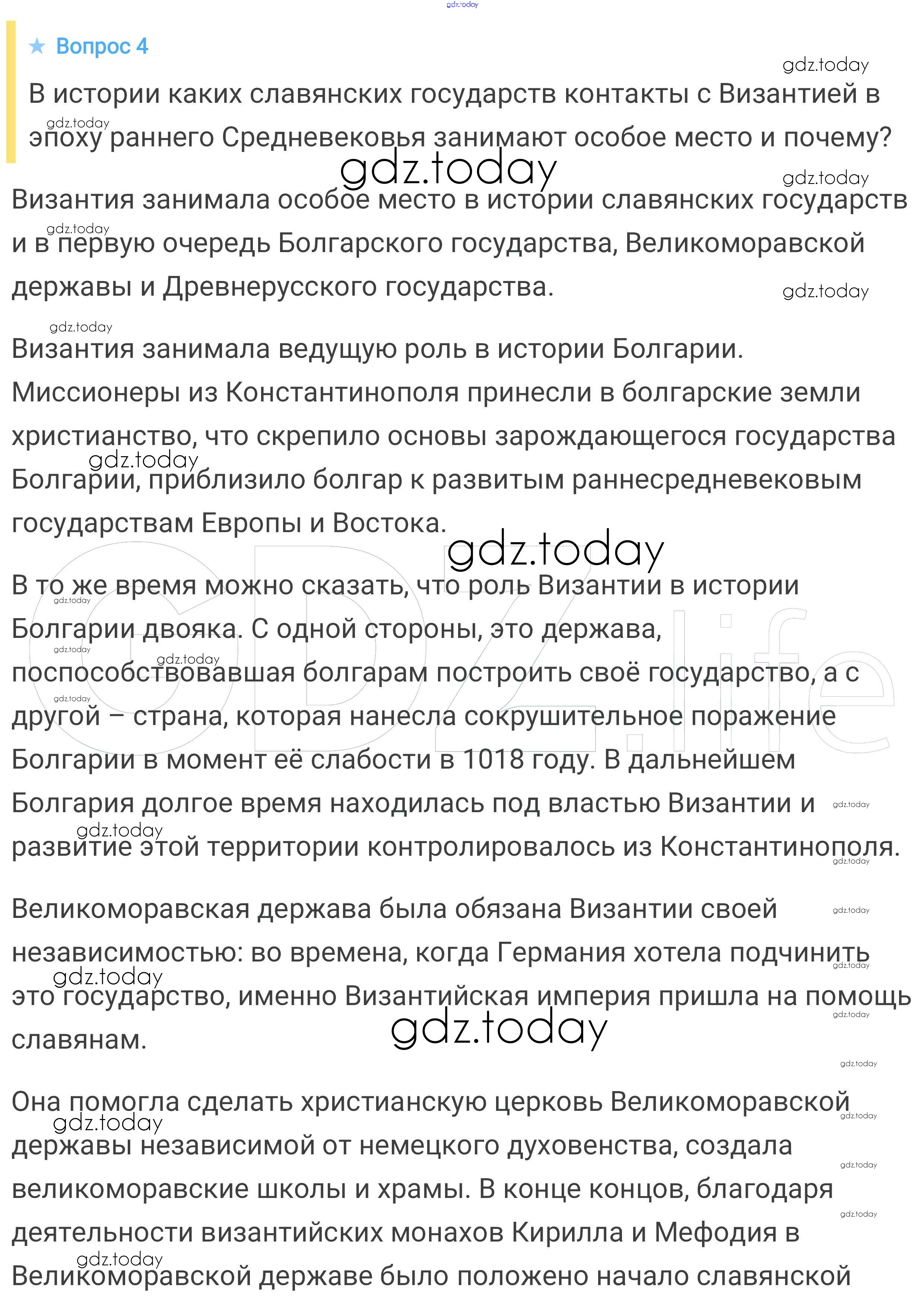 На страницах сайта gdz.today вы найдете учебный и вспомогательный материал, направленный на улучшения знаний школьной программы. ГДЗ - онлайн мир знаний Вопросы и задания к главе Решение к главе 2 4 Учебнику по Всеобщей истории для 6 класса Агибалова, Донской Просвещение 2014