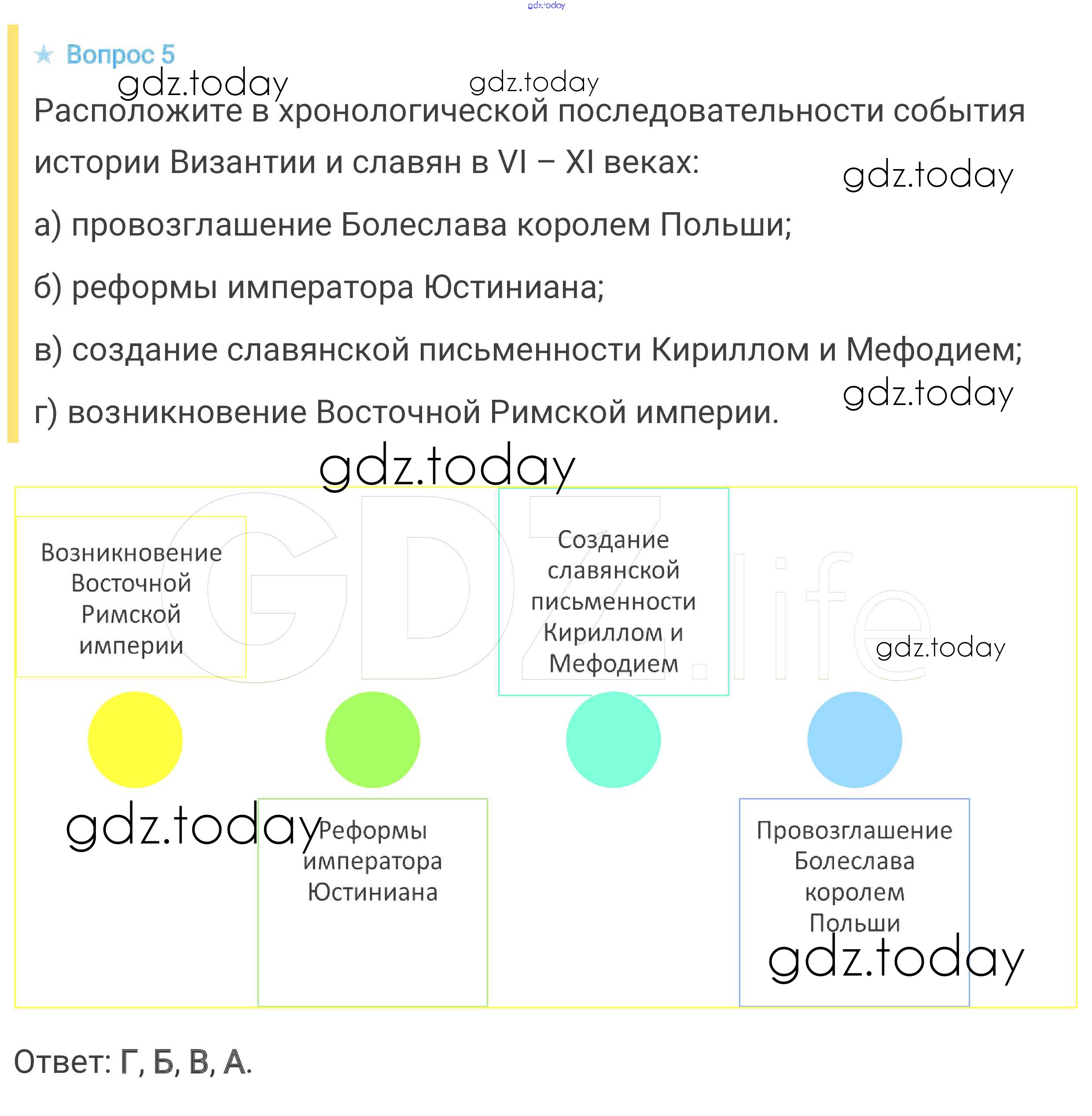 На страницах сайта gdz.today вы найдете учебный и вспомогательный материал, направленный на улучшения знаний школьной программы. ГДЗ - онлайн мир знаний Вопросы и задания к главе Решение к главе 2 5 Учебнику по Всеобщей истории для 6 класса Агибалова, Донской Просвещение 2014