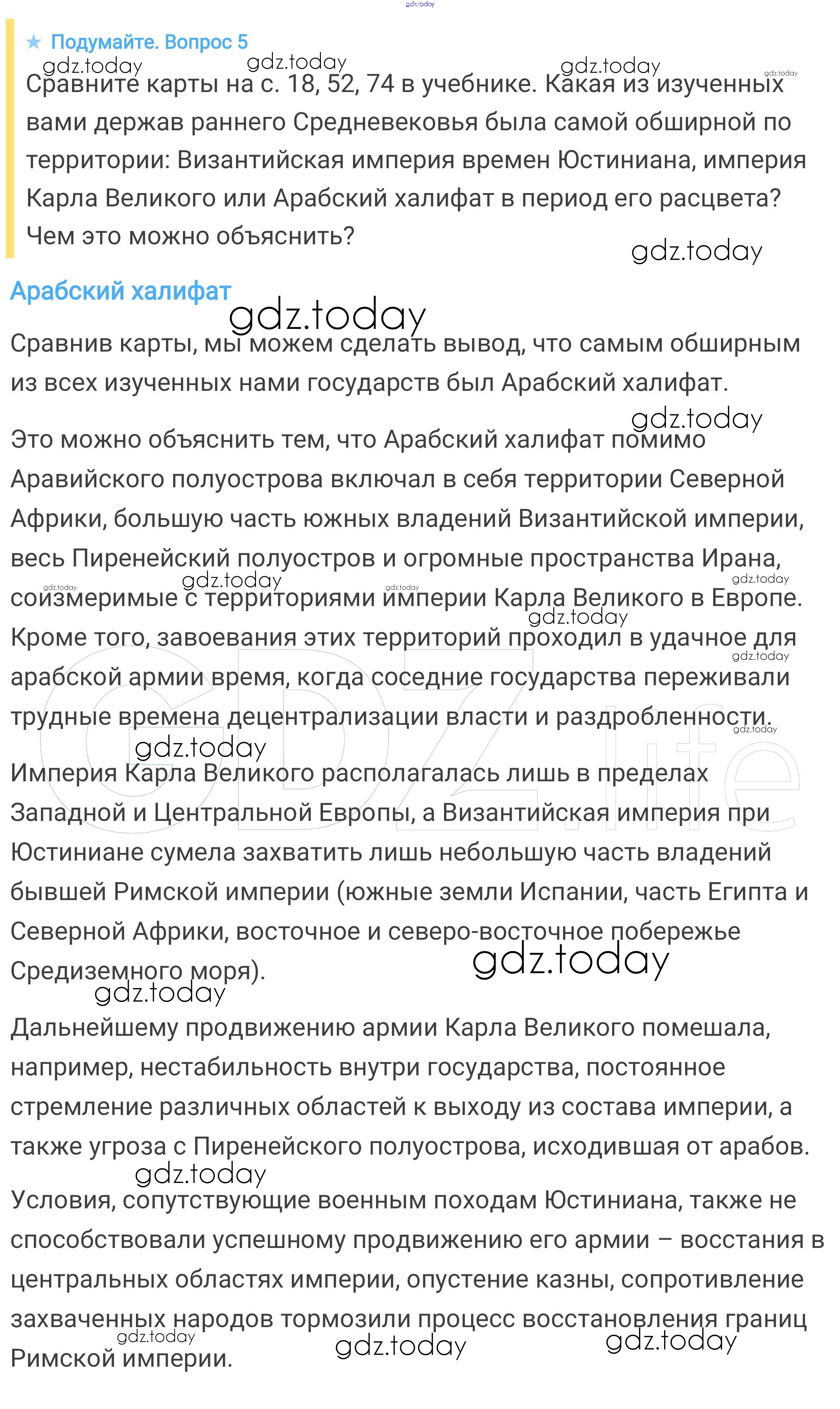 На страницах сайта gdz.today вы найдете учебный и вспомогательный материал, направленный на улучшения знаний школьной программы. ГДЗ - онлайн мир знаний Подумайте § 9. Возникновение ислама. Арабский халифат и его распад 5 Учебнику по Всеобщей истории для 6 класса Агибалова, Донской Просвещение 2014