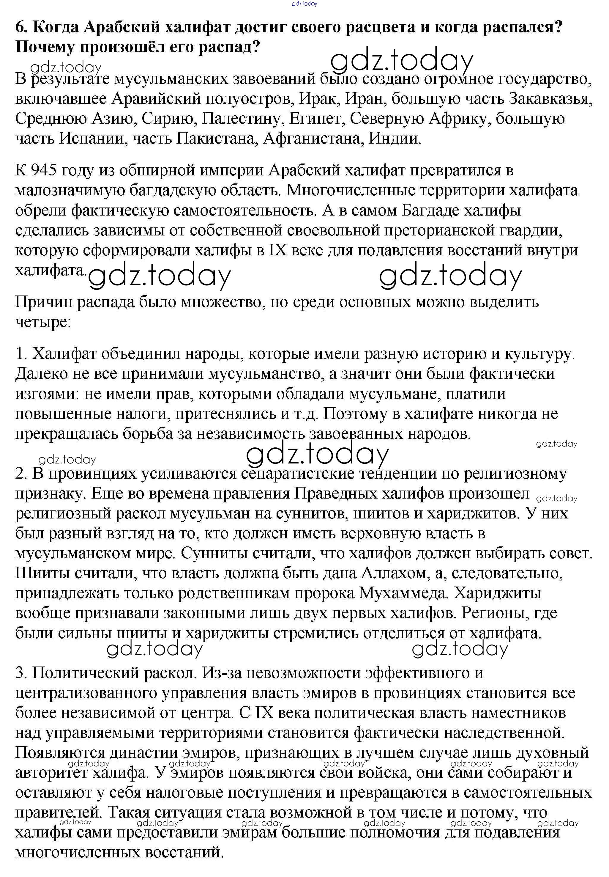 На страницах сайта gdz.today вы найдете учебный и вспомогательный материал, направленный на улучшения знаний школьной программы. ГДЗ - онлайн мир знаний Проверьте себя § 9. Возникновение ислама. Арабский халифат и его распад 6 Учебнику по Всеобщей истории для 6 класса Агибалова, Донской Просвещение 2014