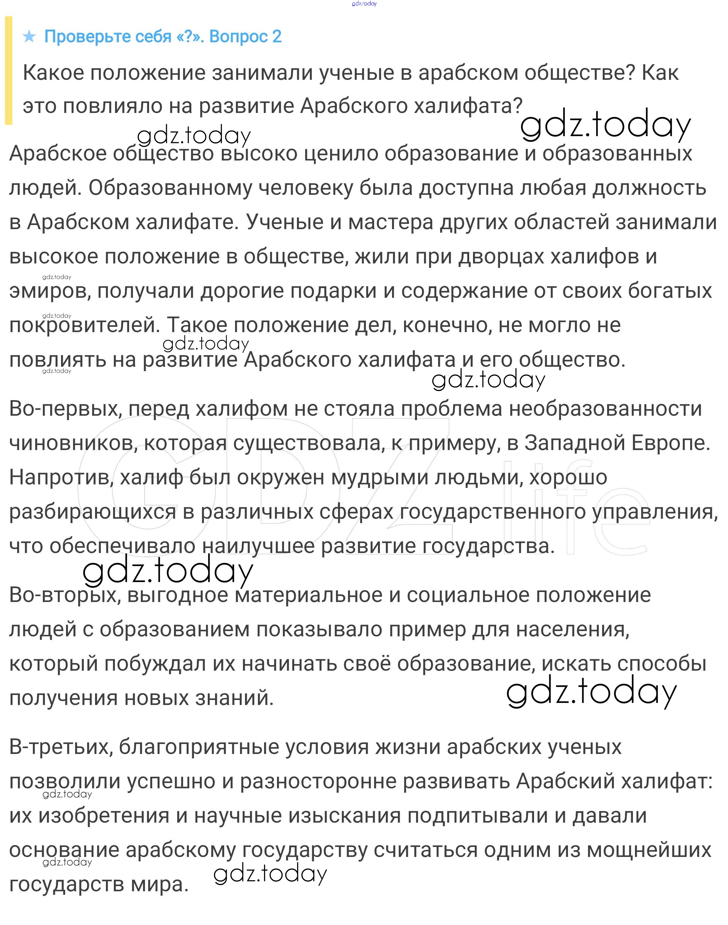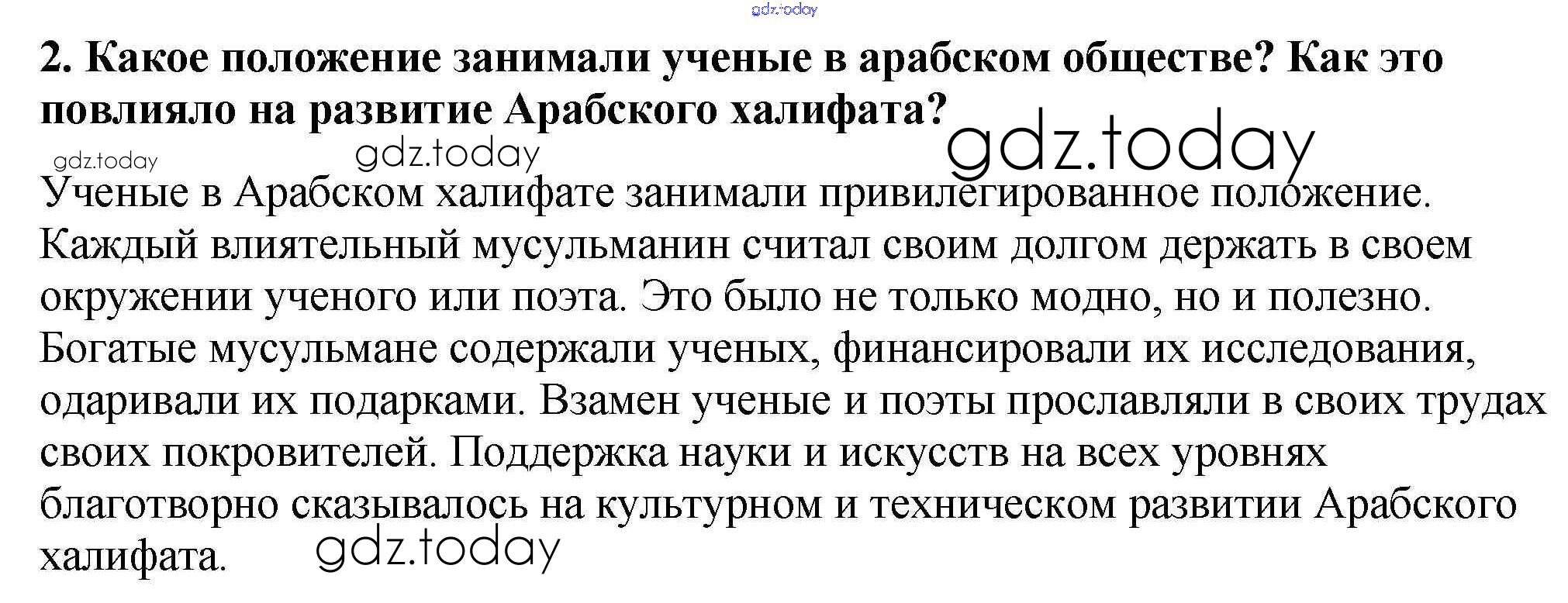 На страницах сайта gdz.today вы найдете учебный и вспомогательный материал, направленный на улучшения знаний школьной программы. ГДЗ - онлайн мир знаний Проверьте себя § 10. Культура стран халифата 2 Учебнику по Всеобщей истории для 6 класса Агибалова, Донской Просвещение 2014
