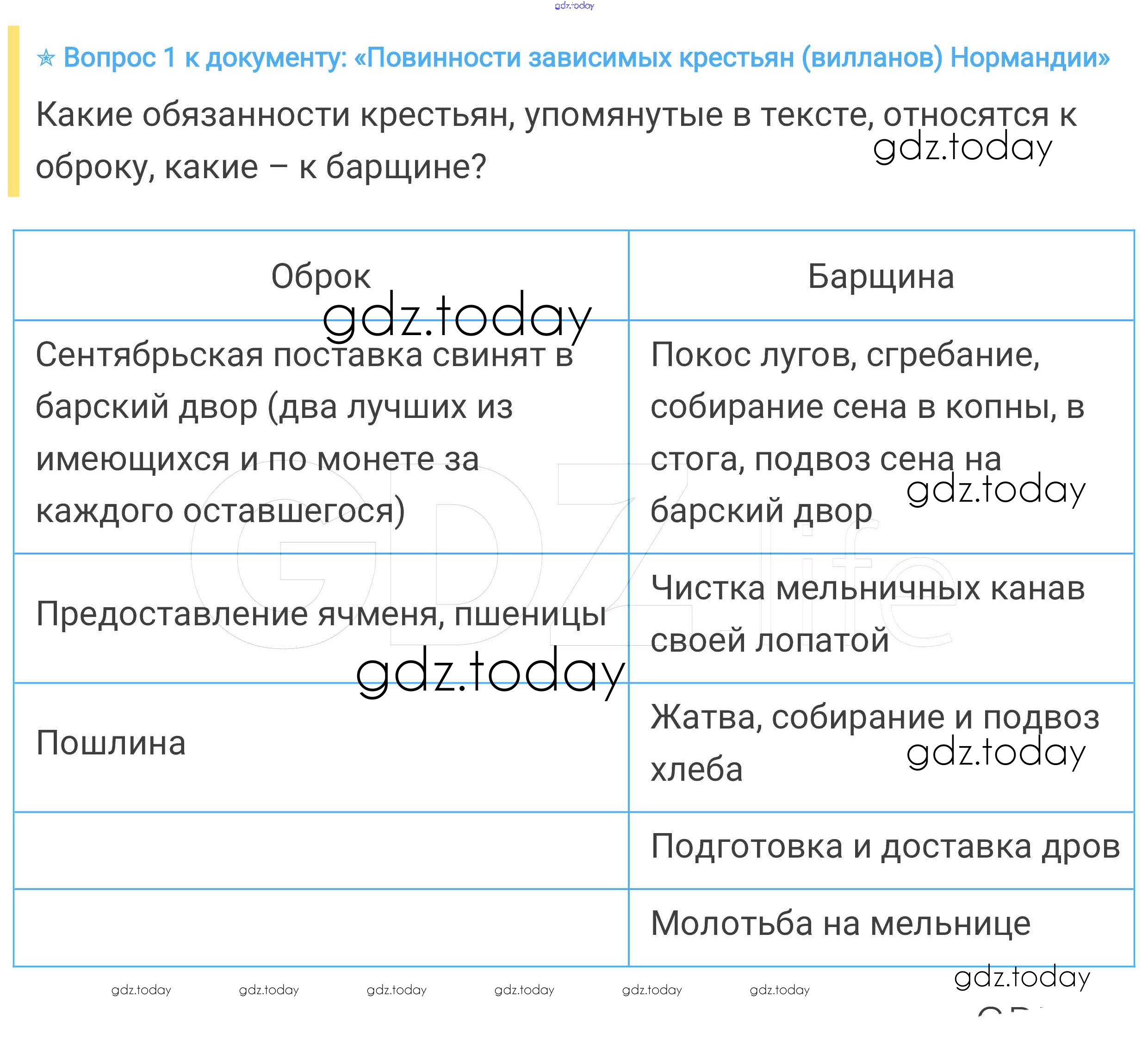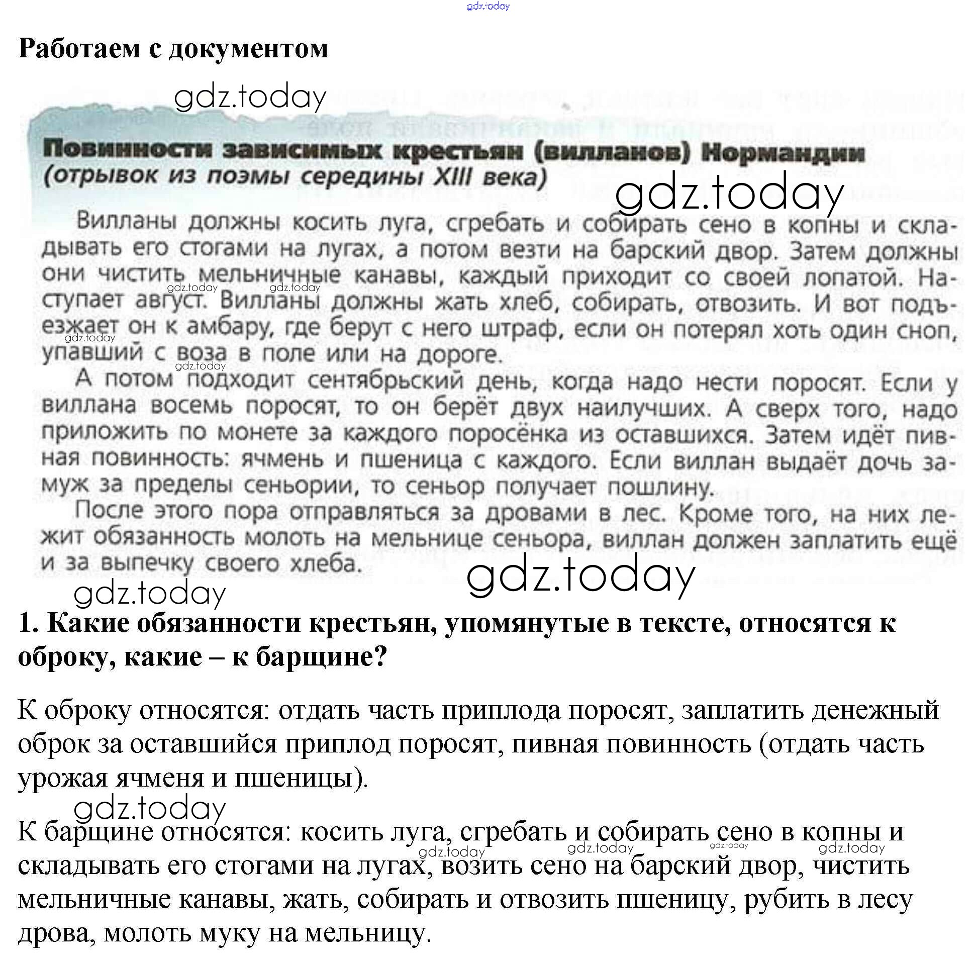 На страницах сайта gdz.today вы найдете учебный и вспомогательный материал, направленный на улучшения знаний школьной программы. ГДЗ - онлайн мир знаний Вопросы к документу § 11. Средневековая деревня и её обитатели 1 Учебнику по Всеобщей истории для 6 класса Агибалова, Донской Просвещение 2014