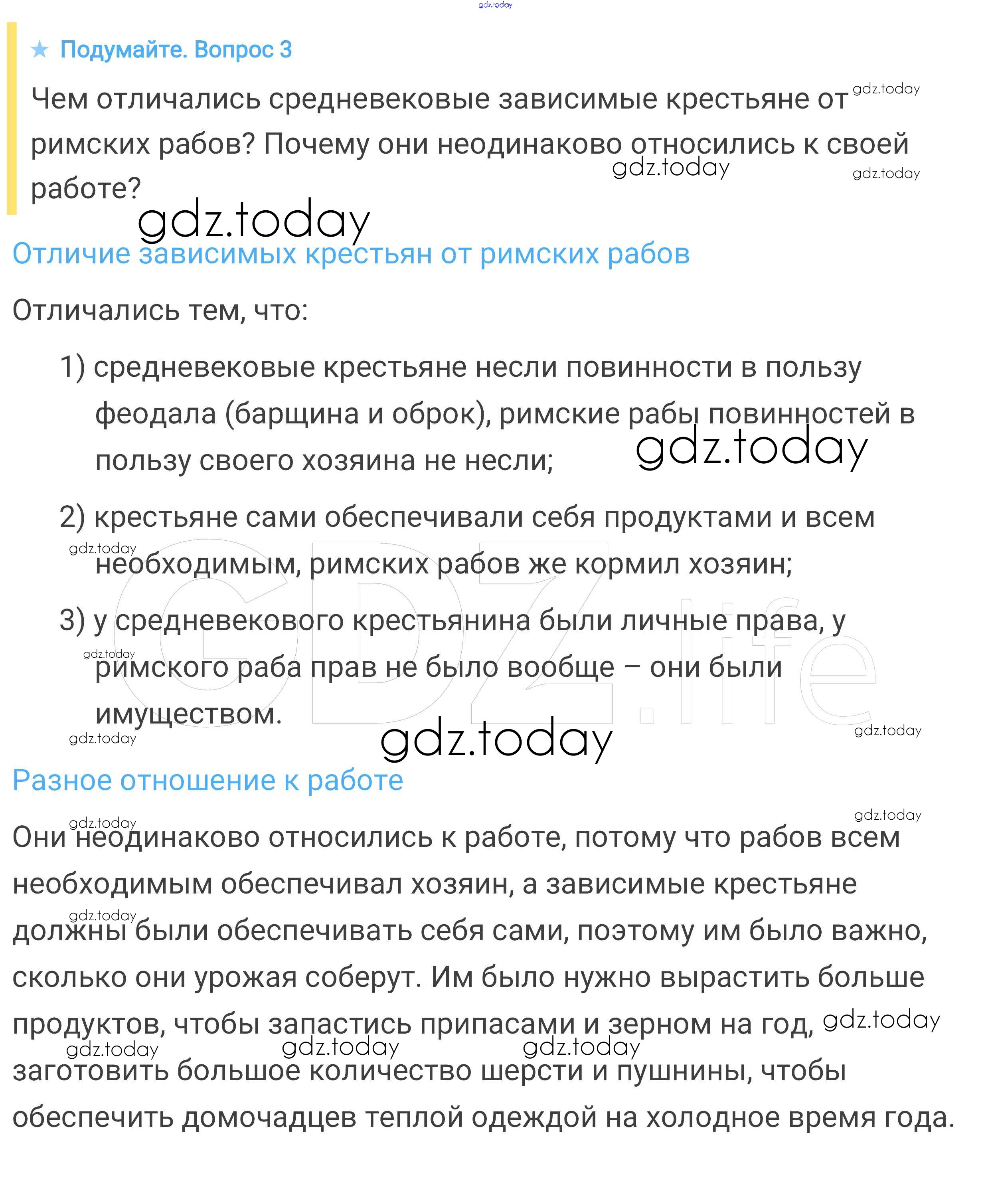На страницах сайта gdz.today вы найдете учебный и вспомогательный материал, направленный на улучшения знаний школьной программы. ГДЗ - онлайн мир знаний Подумайте § 11. Средневековая деревня и её обитатели 3 Учебнику по Всеобщей истории для 6 класса Агибалова, Донской Просвещение 2014