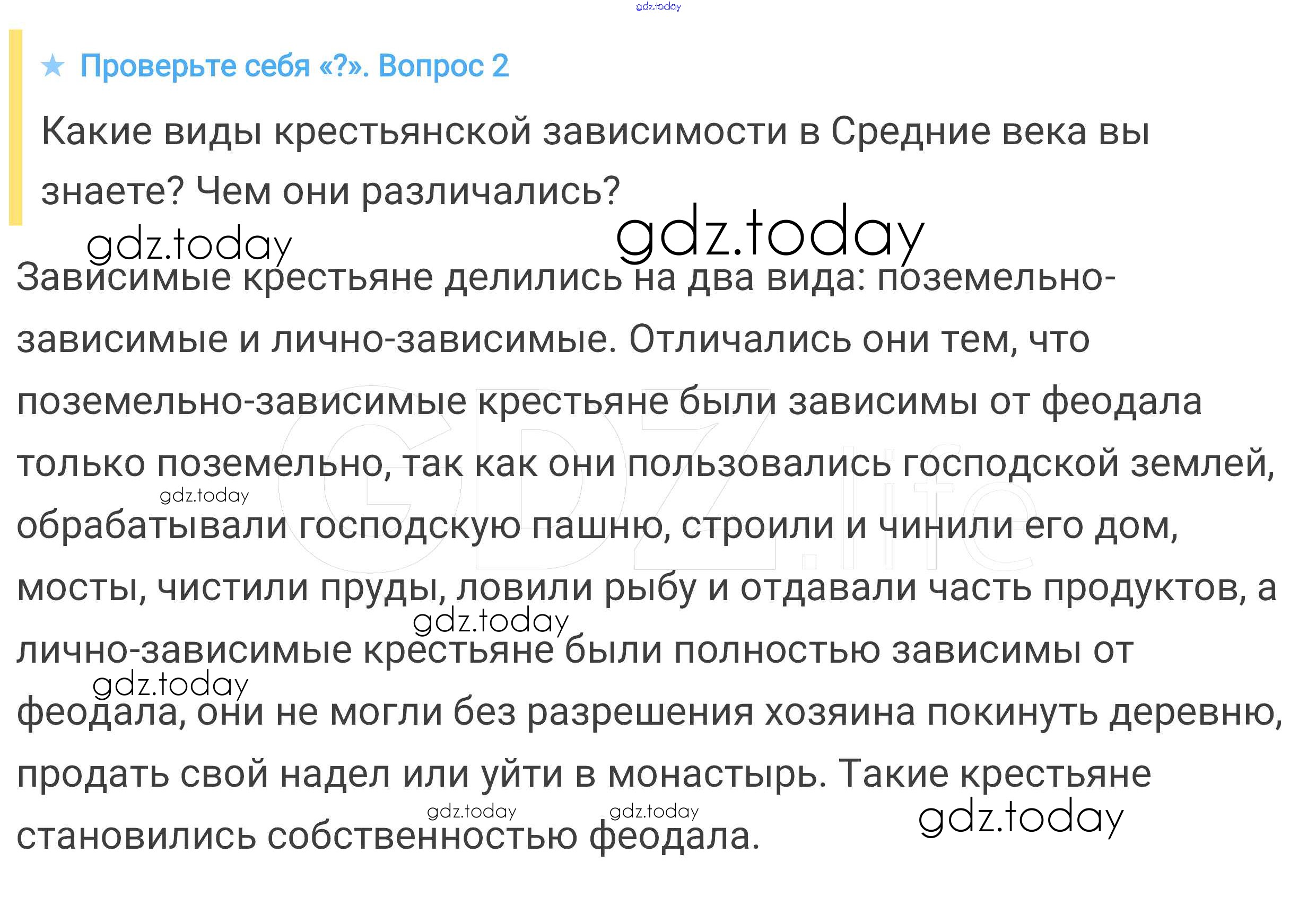 На страницах сайта gdz.today вы найдете учебный и вспомогательный материал, направленный на улучшения знаний школьной программы. ГДЗ - онлайн мир знаний Проверьте себя § 11. Средневековая деревня и её обитатели 2 Учебнику по Всеобщей истории для 6 класса Агибалова, Донской Просвещение 2014