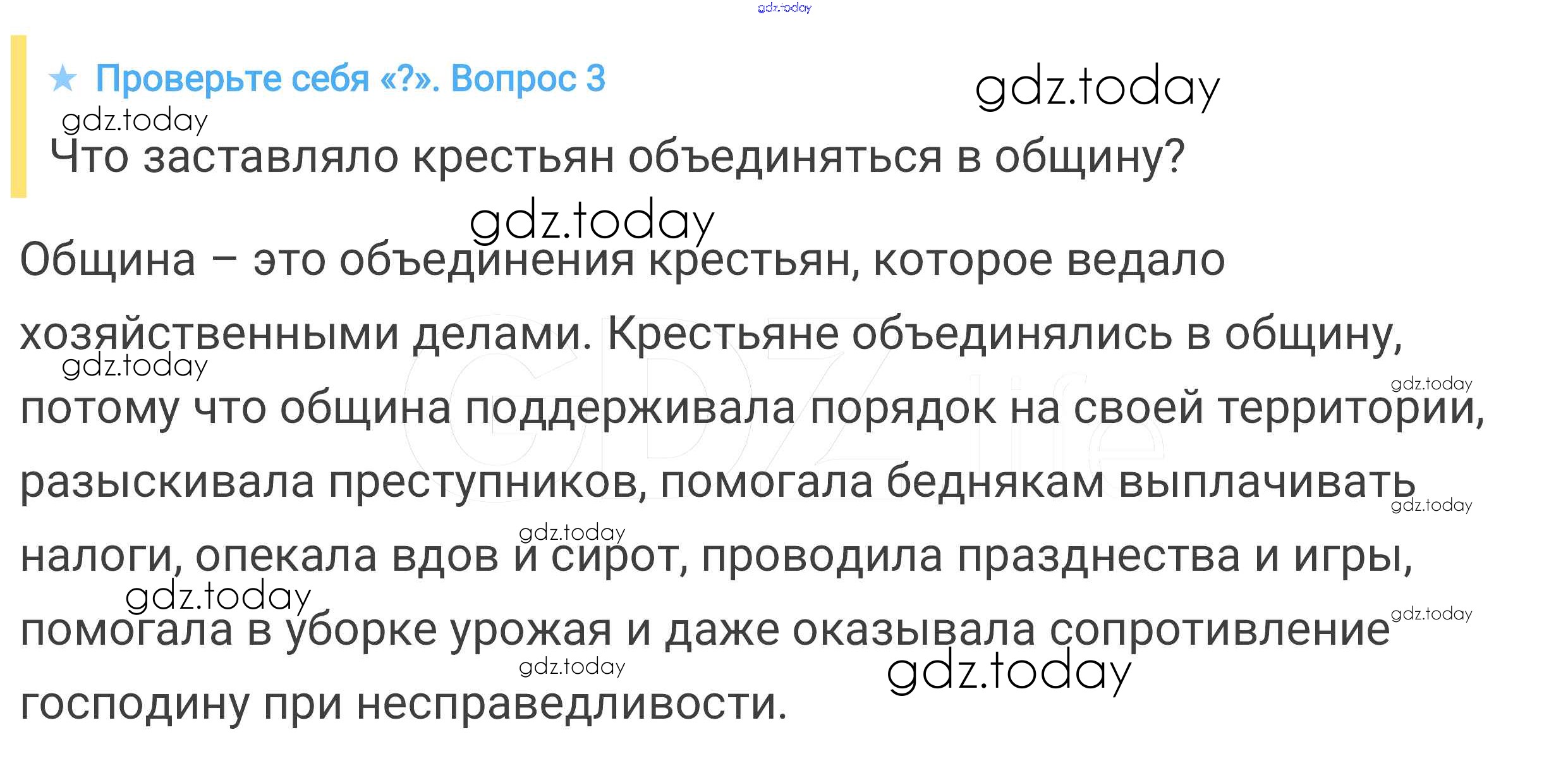 На страницах сайта gdz.today вы найдете учебный и вспомогательный материал, направленный на улучшения знаний школьной программы. ГДЗ - онлайн мир знаний Проверьте себя § 11. Средневековая деревня и её обитатели 3 Учебнику по Всеобщей истории для 6 класса Агибалова, Донской Просвещение 2014