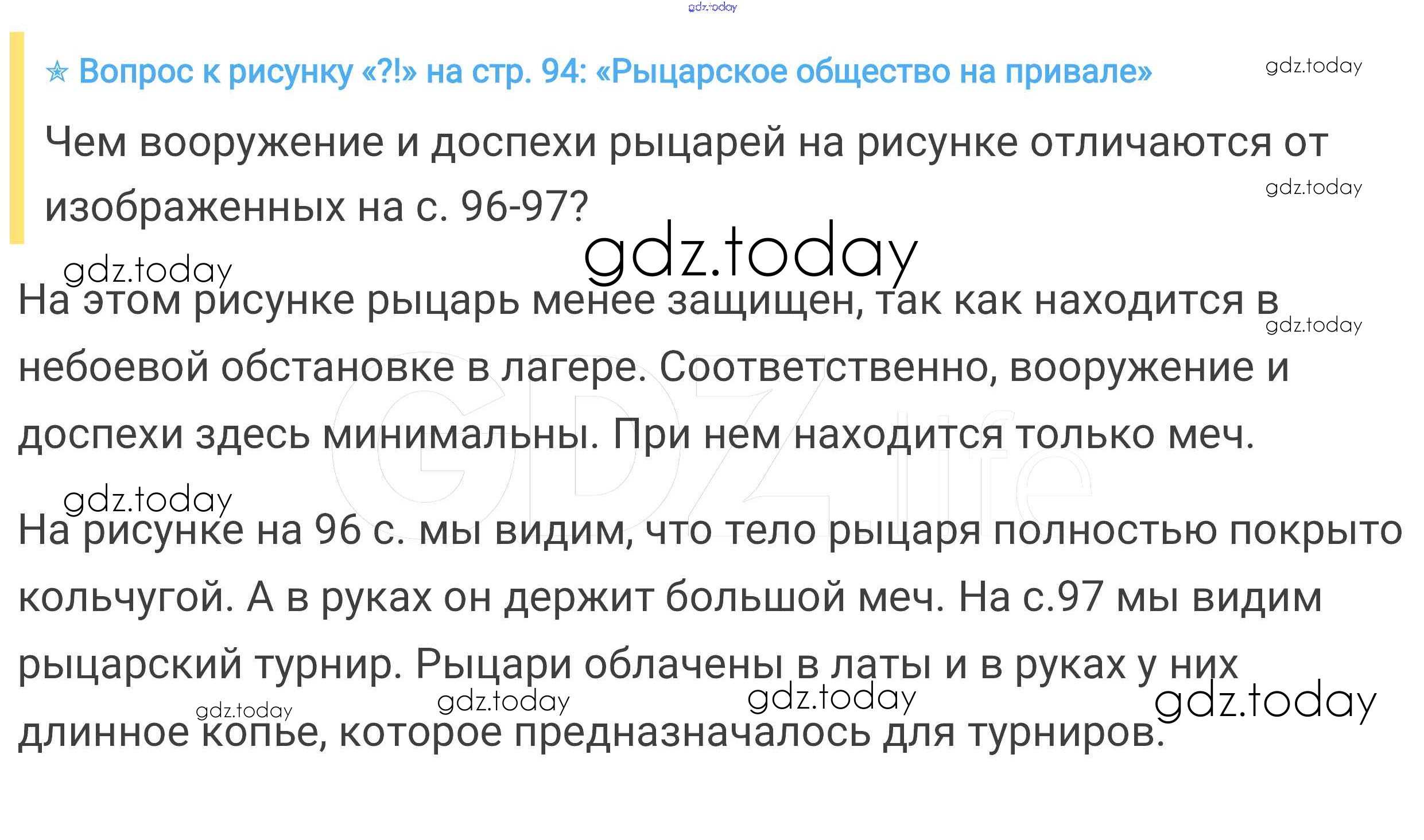 На страницах сайта gdz.today вы найдете учебный и вспомогательный материал, направленный на улучшения знаний школьной программы. ГДЗ - онлайн мир знаний Вопросы к рисункам § 12. В рыцарском замке 1 Учебнику по Всеобщей истории для 6 класса Агибалова, Донской Просвещение 2014