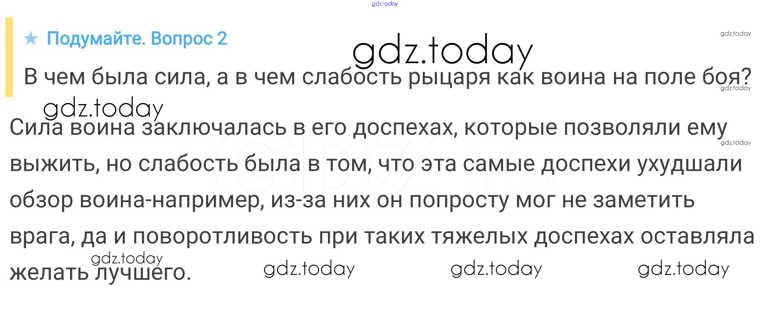 На страницах сайта gdz.today вы найдете учебный и вспомогательный материал, направленный на улучшения знаний школьной программы. ГДЗ - онлайн мир знаний Подумайте § 12. В рыцарском замке 2 Учебнику по Всеобщей истории для 6 класса Агибалова, Донской Просвещение 2014