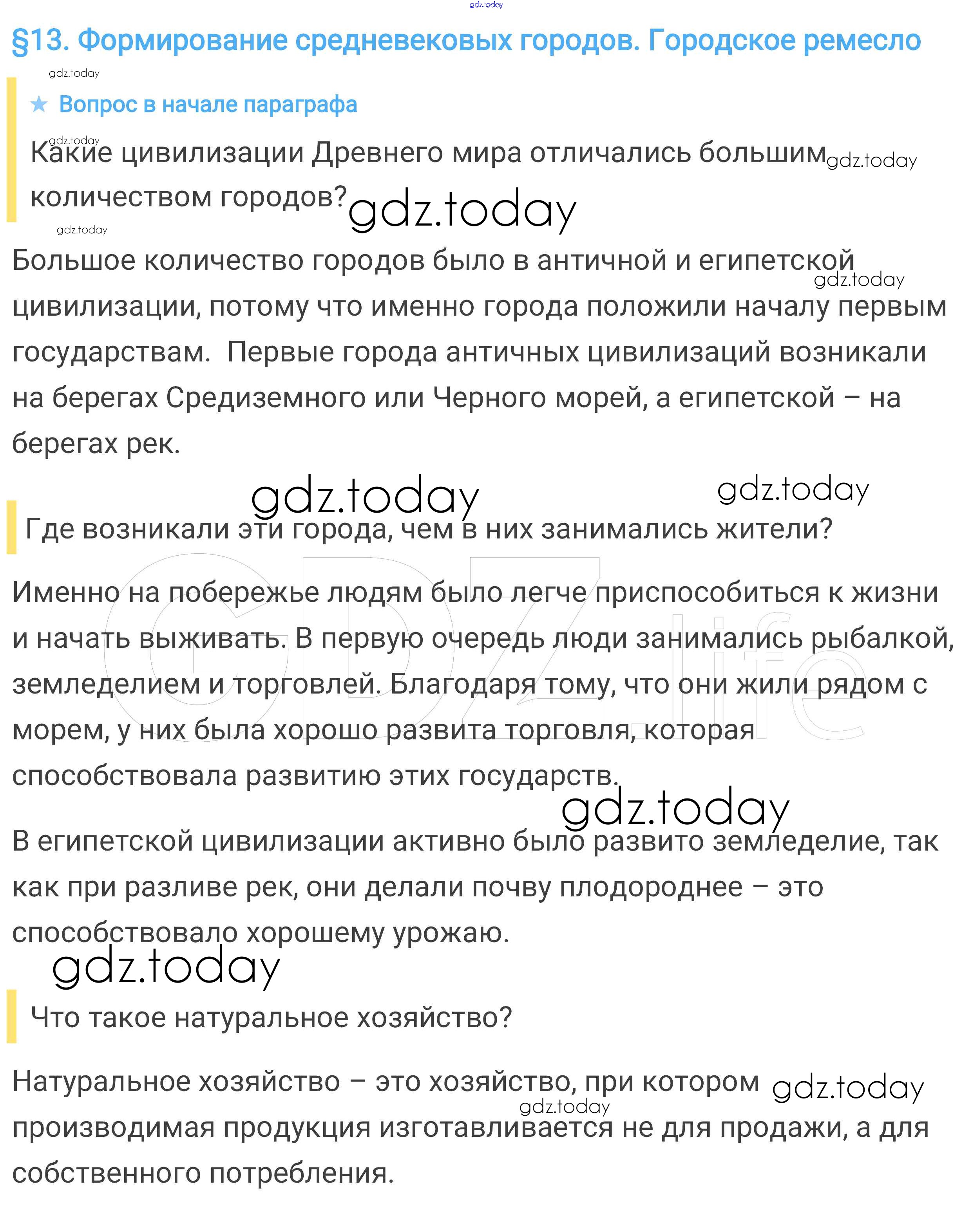 На страницах сайта gdz.today вы найдете учебный и вспомогательный материал, направленный на улучшения знаний школьной программы. ГДЗ - онлайн мир знаний Вопросы в начале параграфа § 13. Формирование средневековых городов. Городское ремесло 1 Учебнику по Всеобщей истории для 6 класса Агибалова, Донской Просвещение 2014